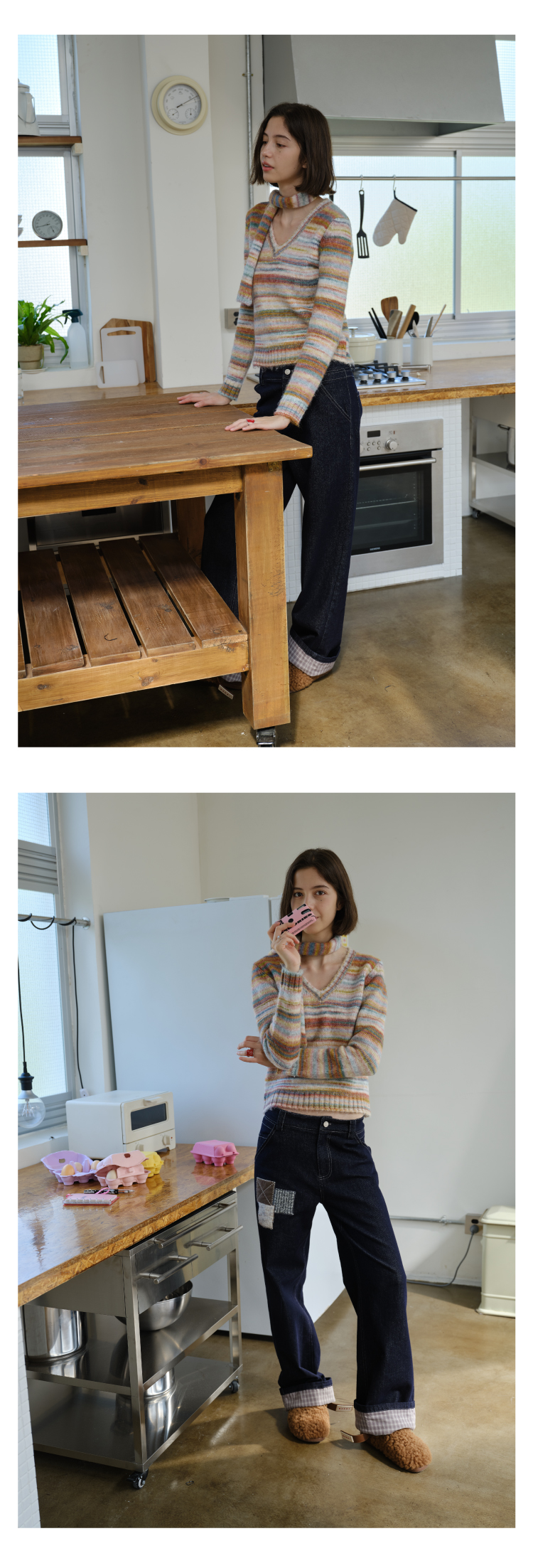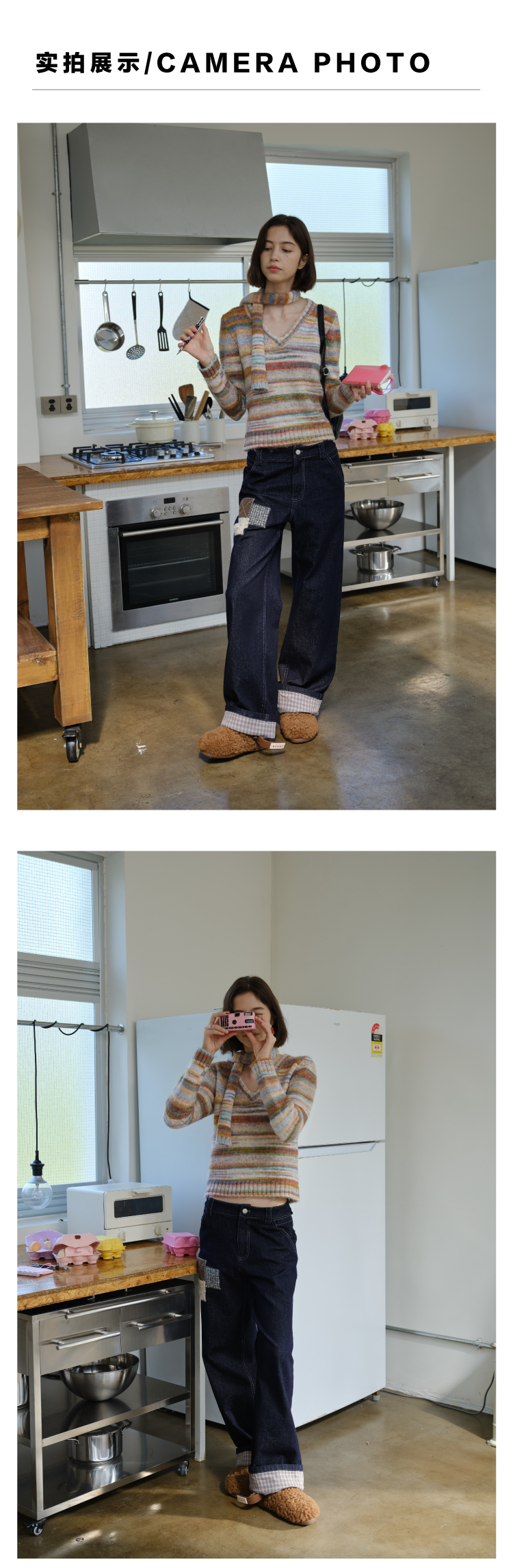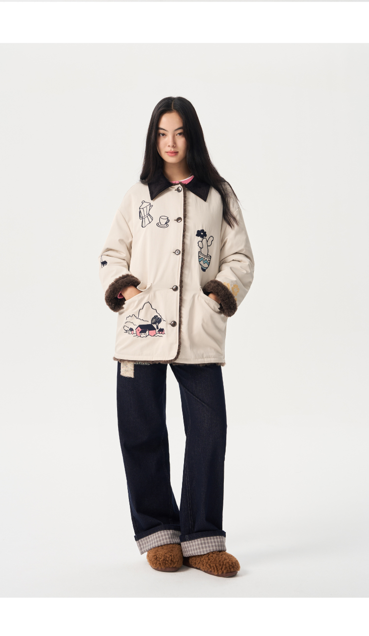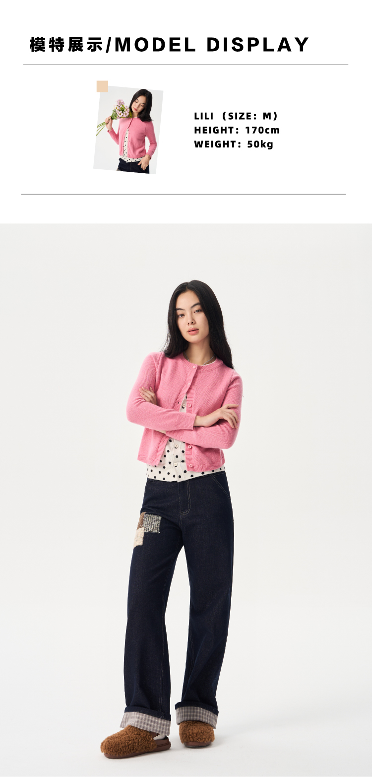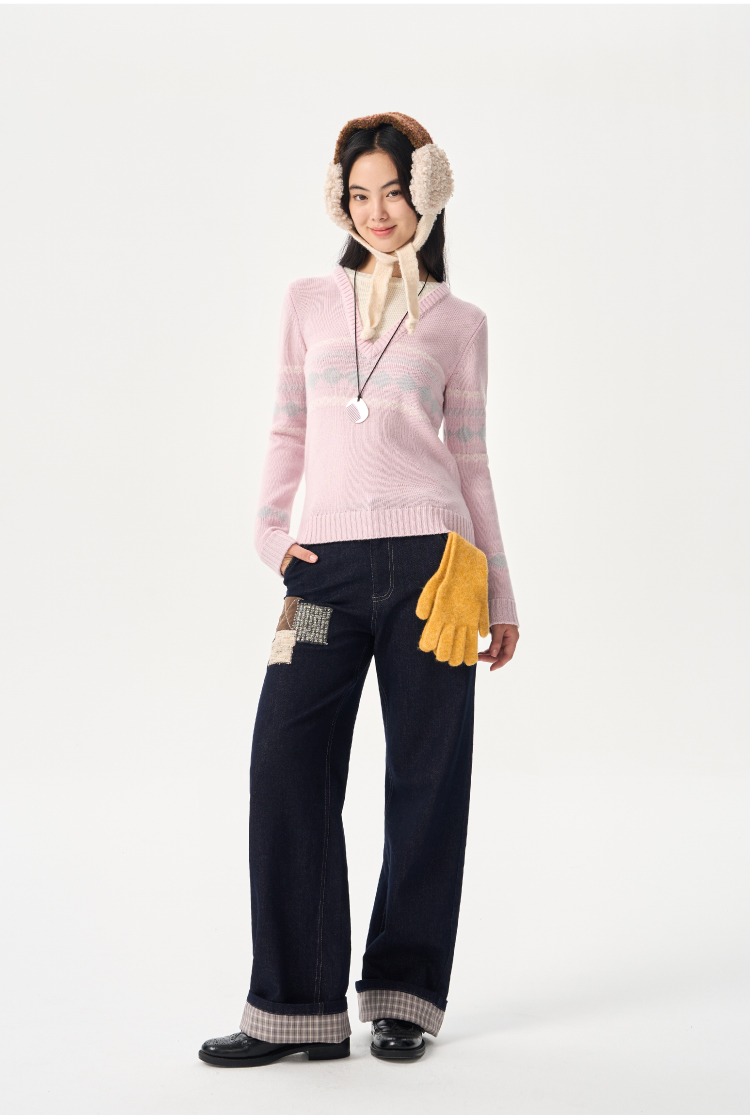 heris/H54110/毛呢贴布刺绣原色直筒好版型中腰牛仔裤