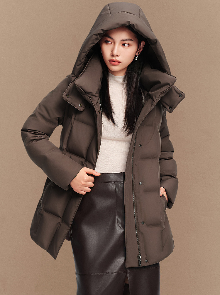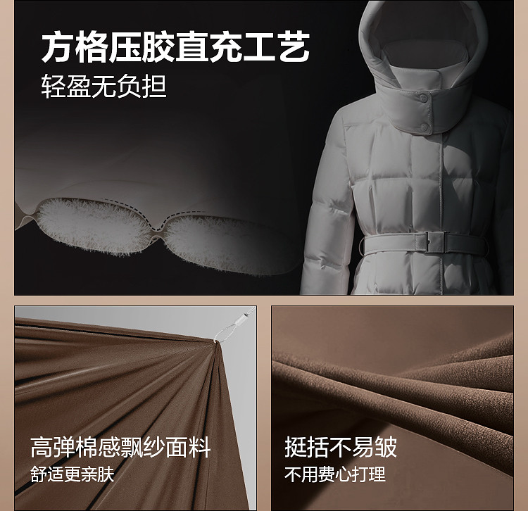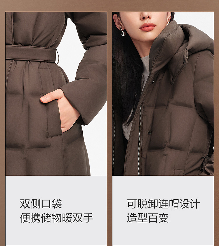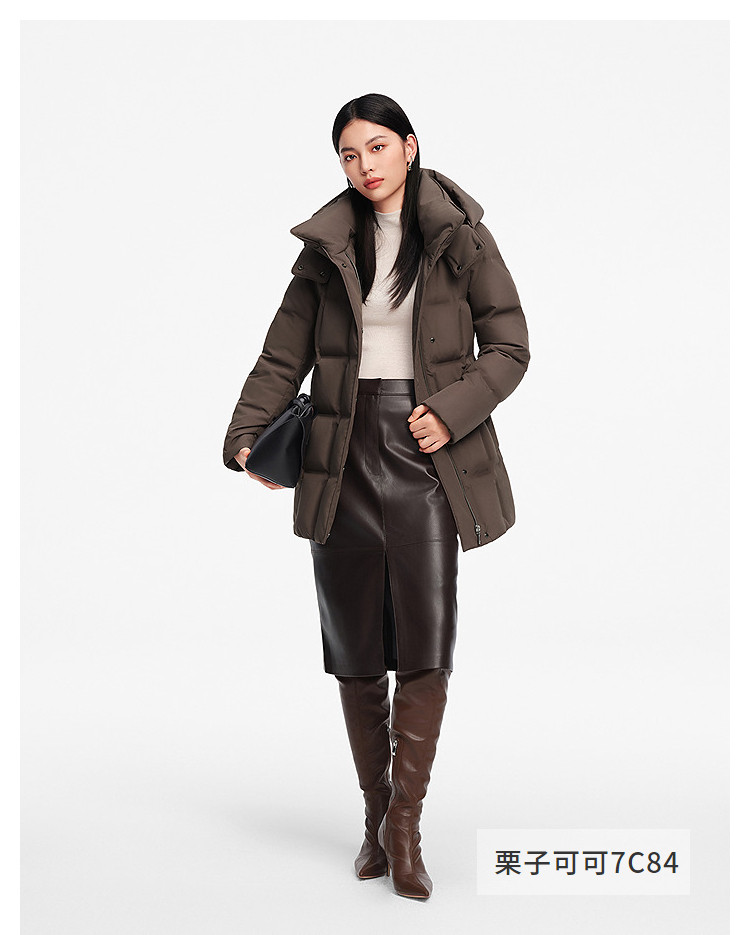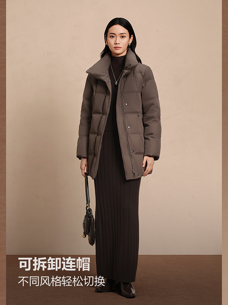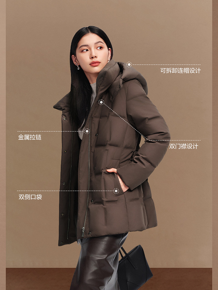 波司登25新款羽绒服女商务可脱卸帽中款品质直充收腰显瘦90鹅绒