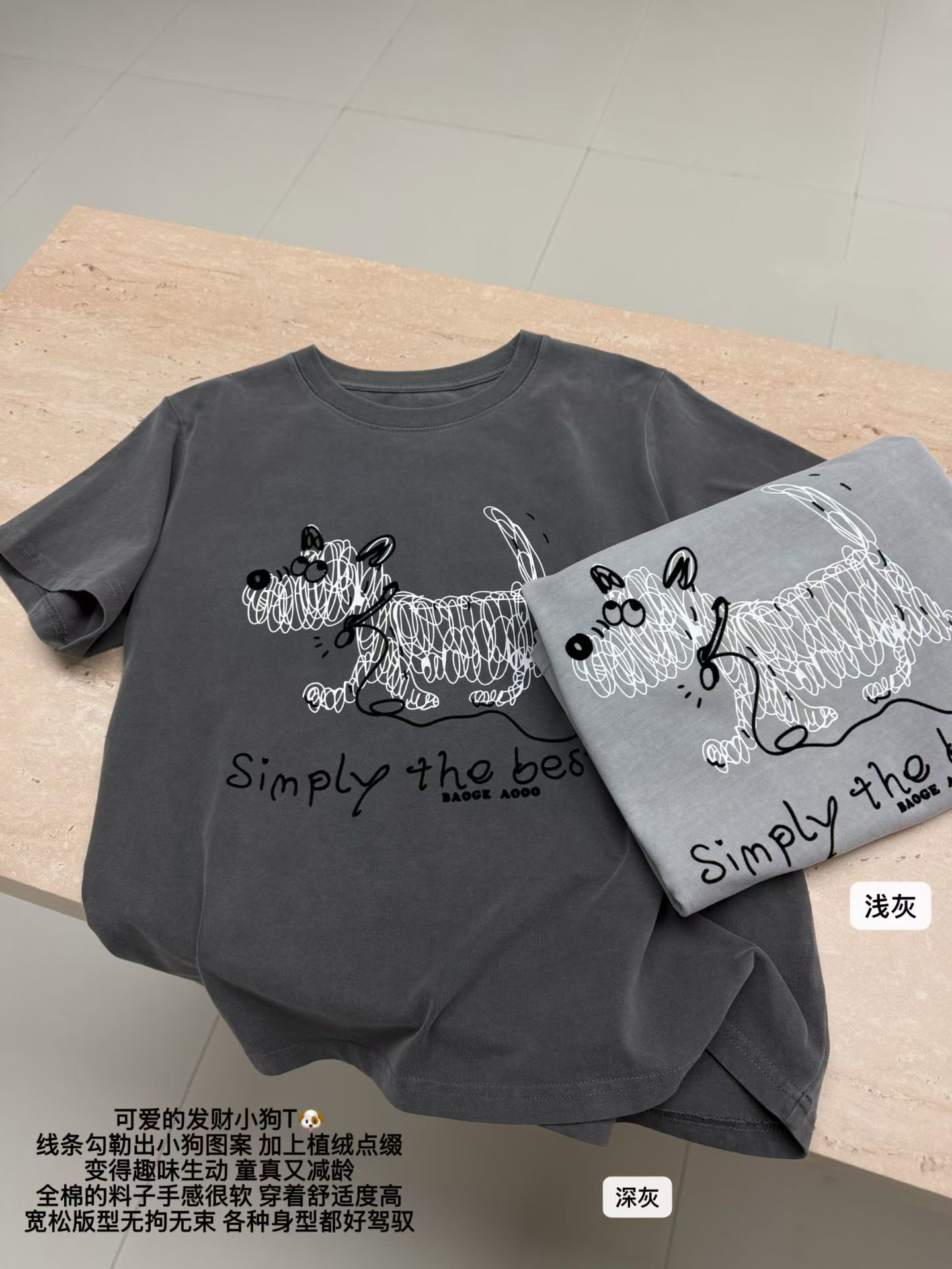 韩代同款。 被这件发财线条小狗T戳中了!