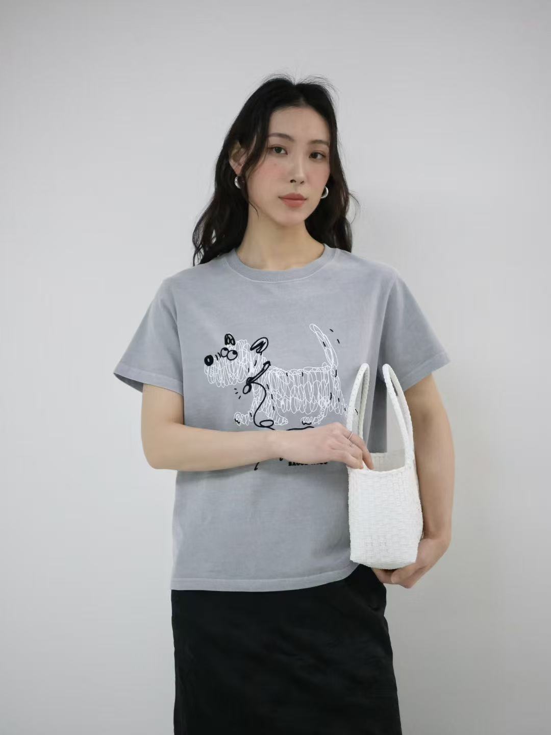老米优品🎈5-7天!韩代同款《线条小狗短款tee》优质砂洗纯棉🍃品质nice~!小个子友好。袖口无蕾丝版。T260322A