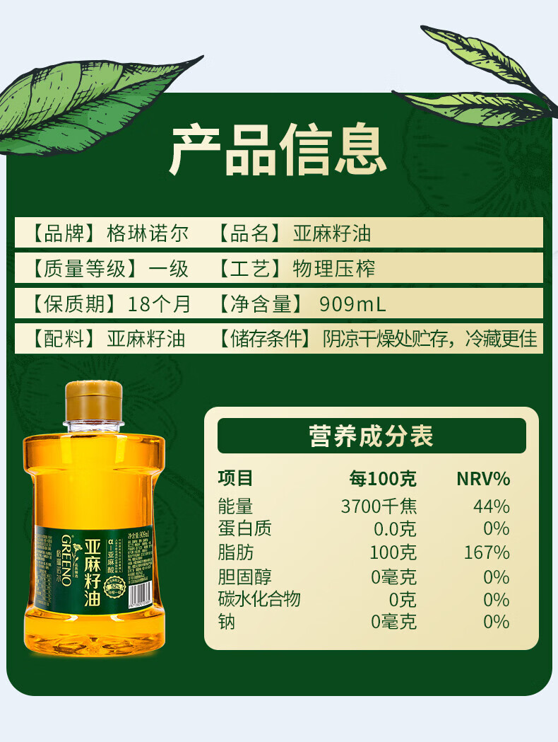 格琳诺尔亚麻籽油909ml