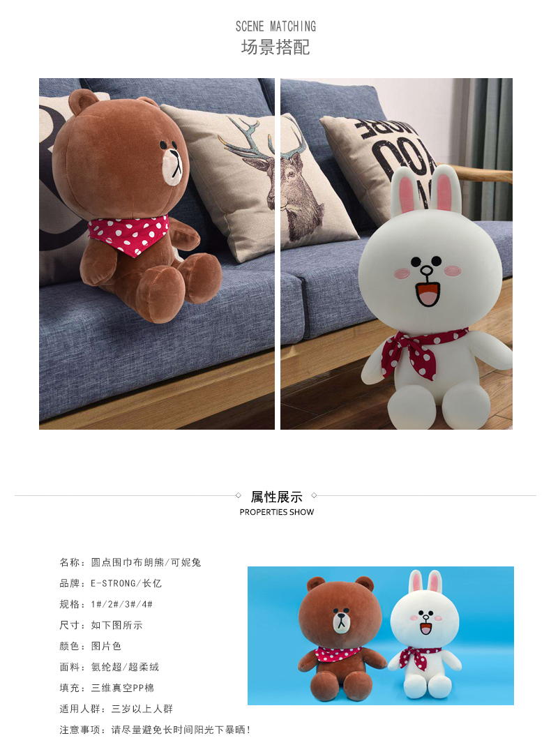 LINE FRIENDS圆点围巾款毛绒玩偶新品礼物