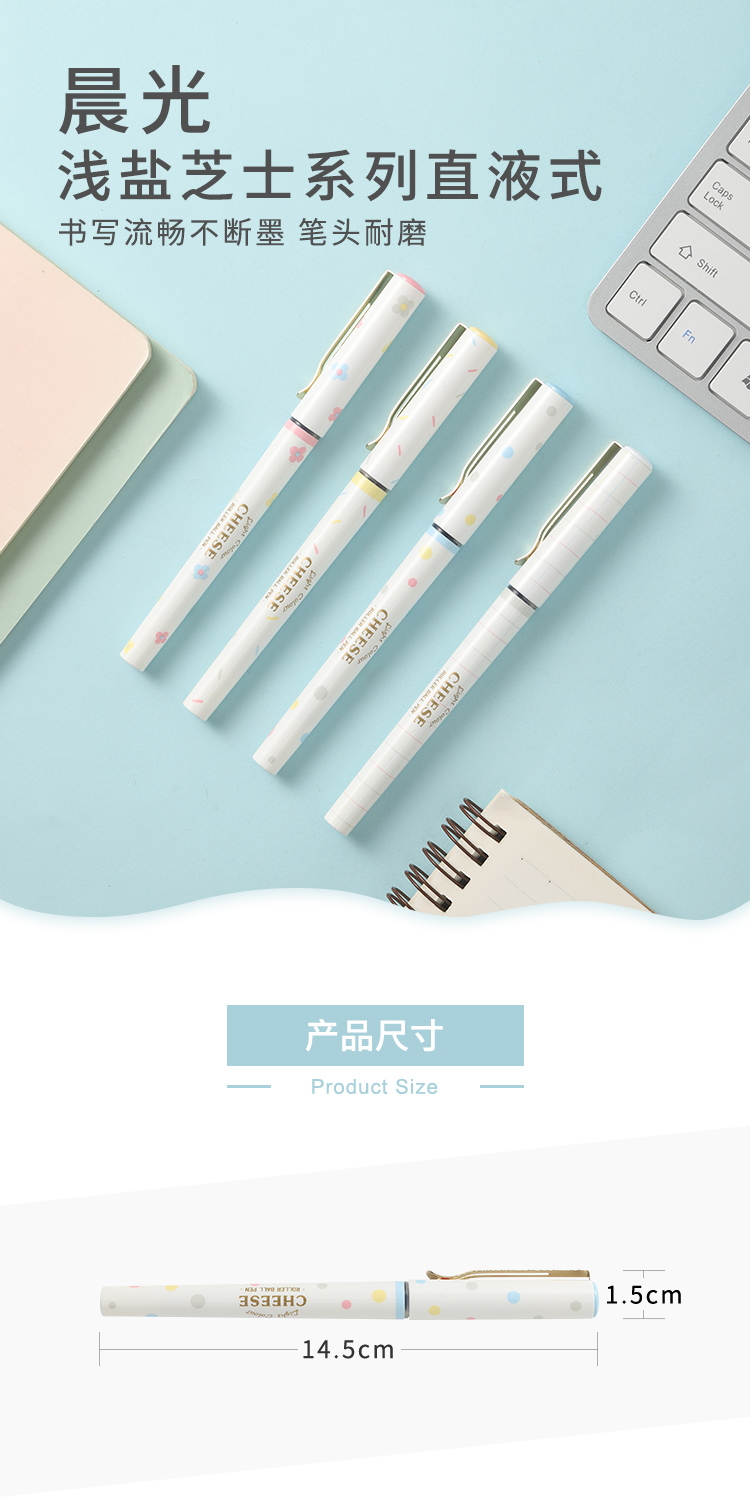 晨光浅盐芝士系列直液式ARP57506黑0.5中性笔学生用大容量碳素黑笔