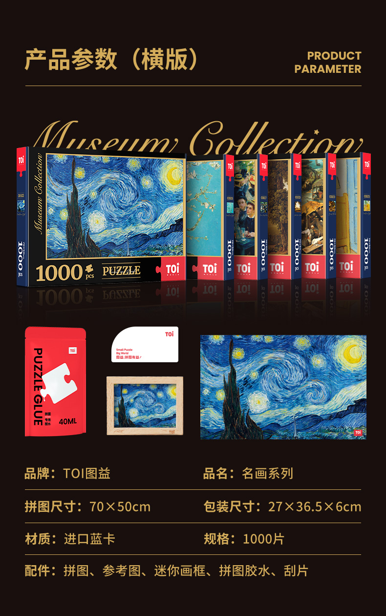TOI图益潮玩拼图馆藏系列梵高名画星月夜成人潮玩拼图高难度油画1000片