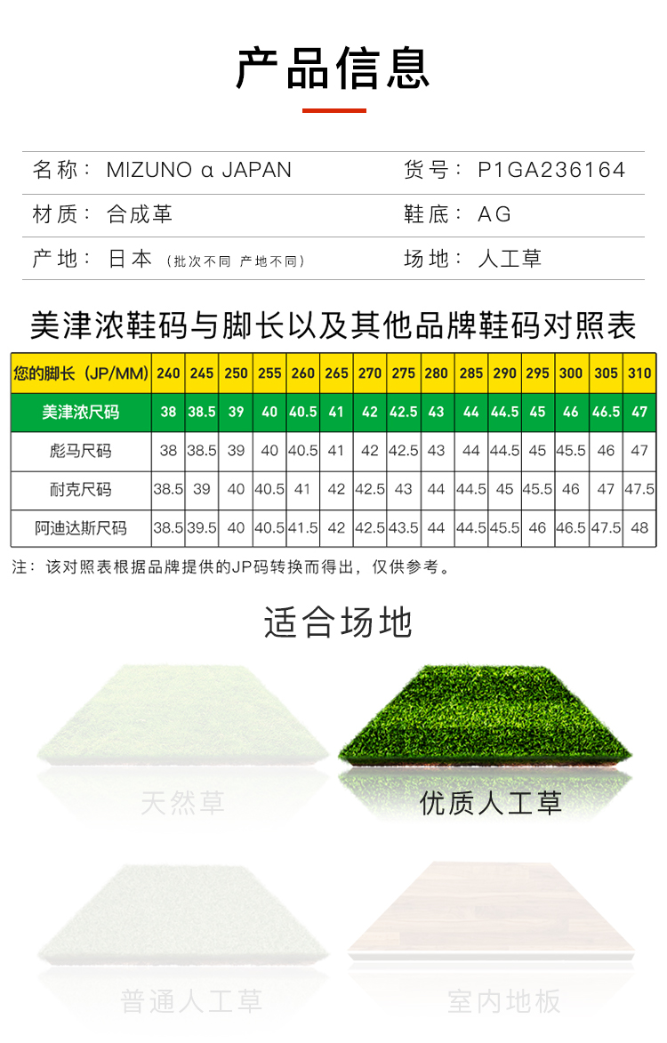 Mizuno/美津浓阿尔法α高端AG短钉日产人草成人足球鞋男P1GA236164
