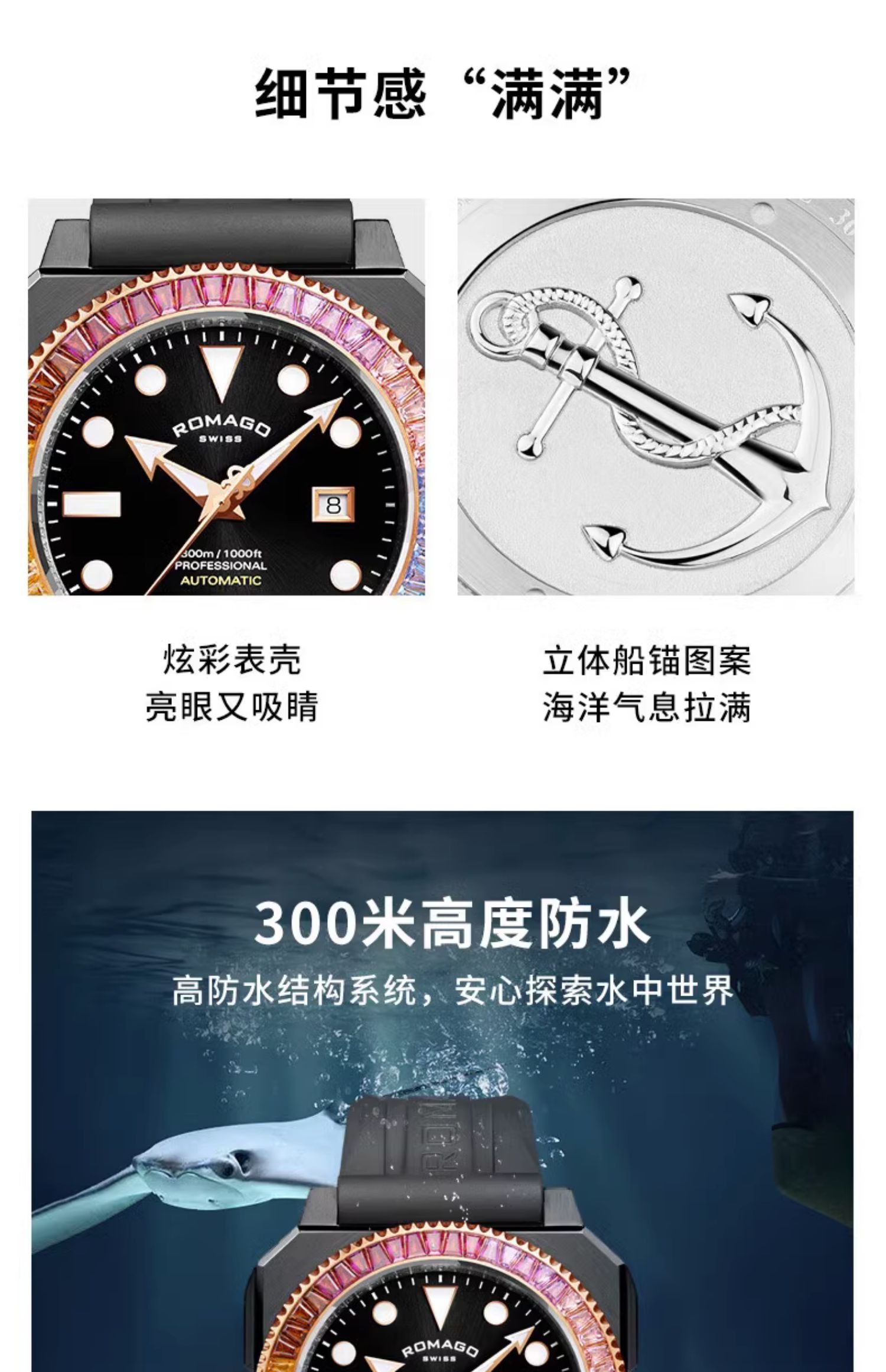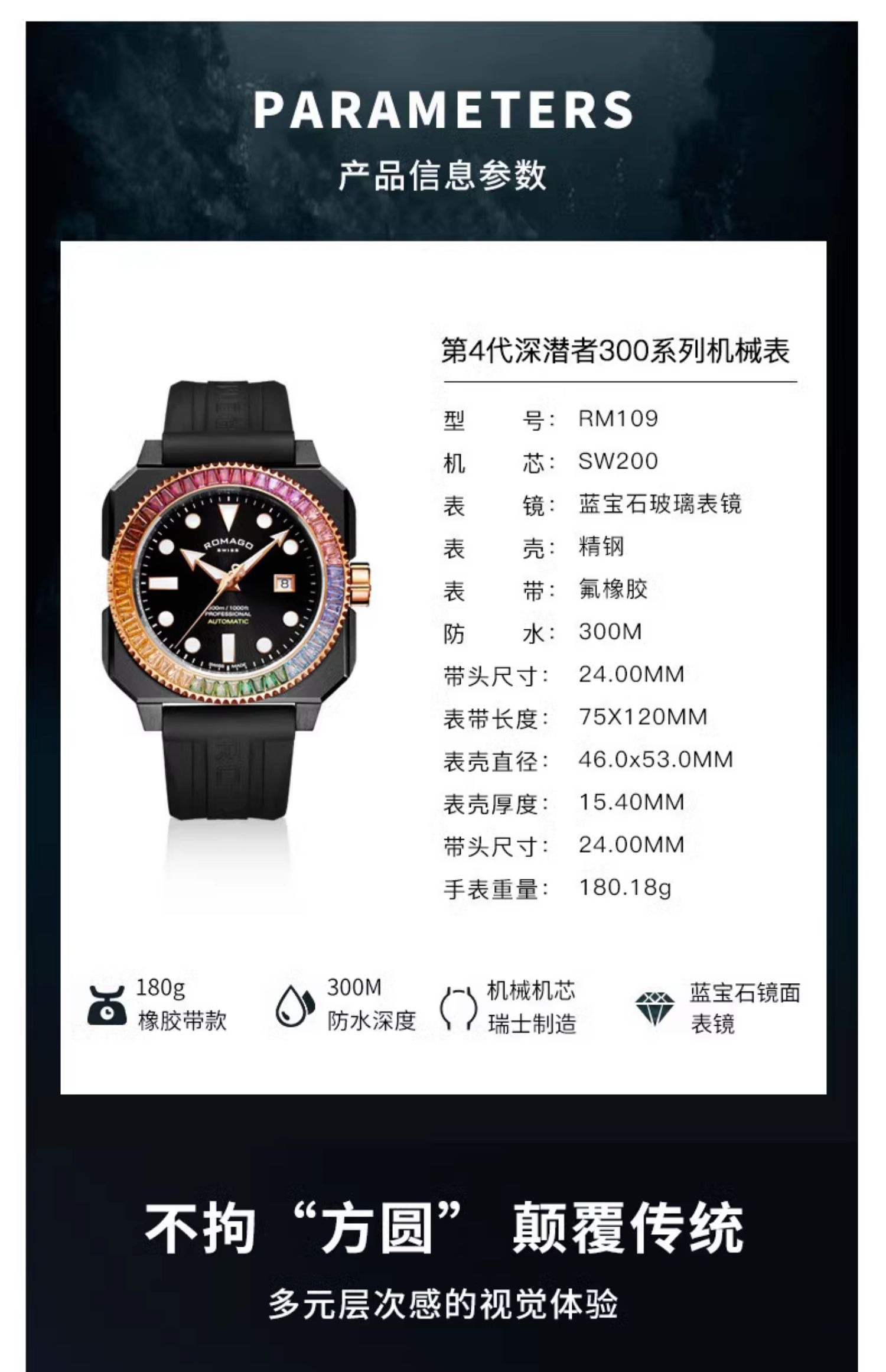 Romago SWISS 专业深潜者300系列腕表 彩虹色 RM109-RBOW
