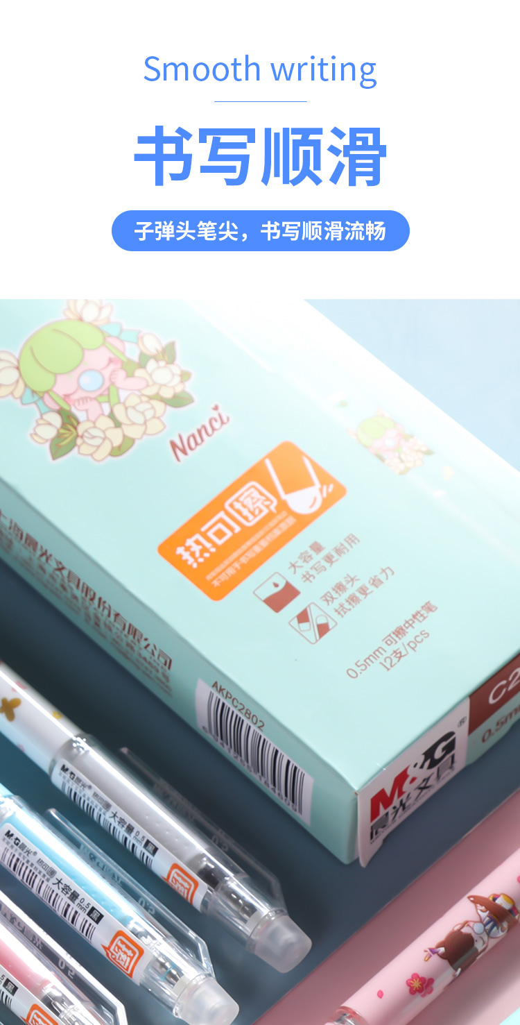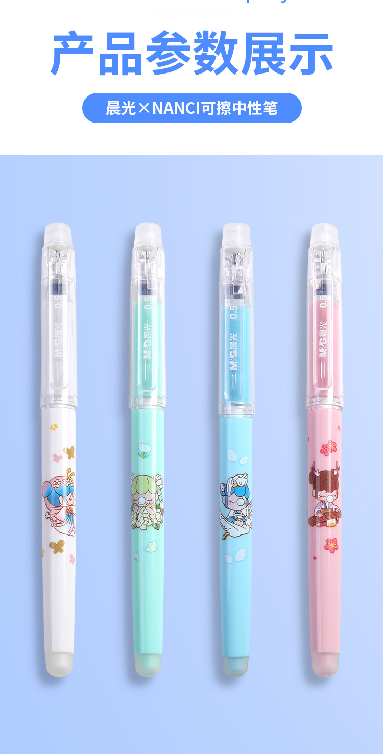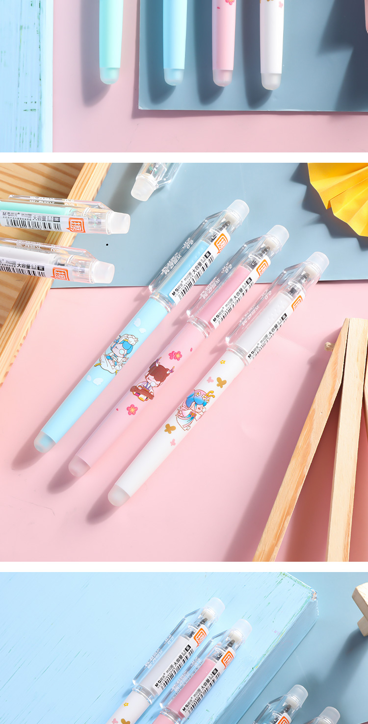 晨光可擦水性笔AKPC2802黑0.5mm大容量子弹头学生用水笔卡通笔