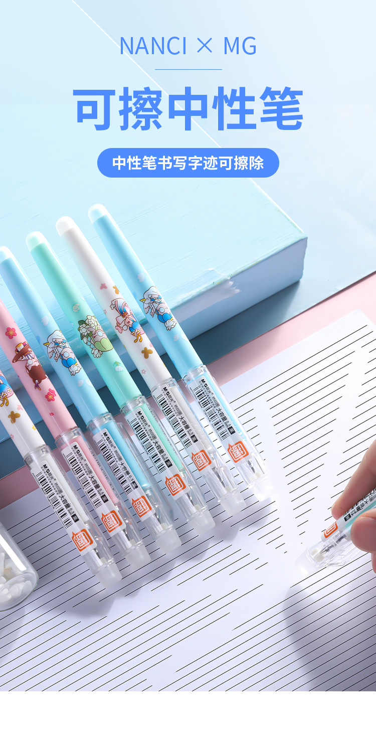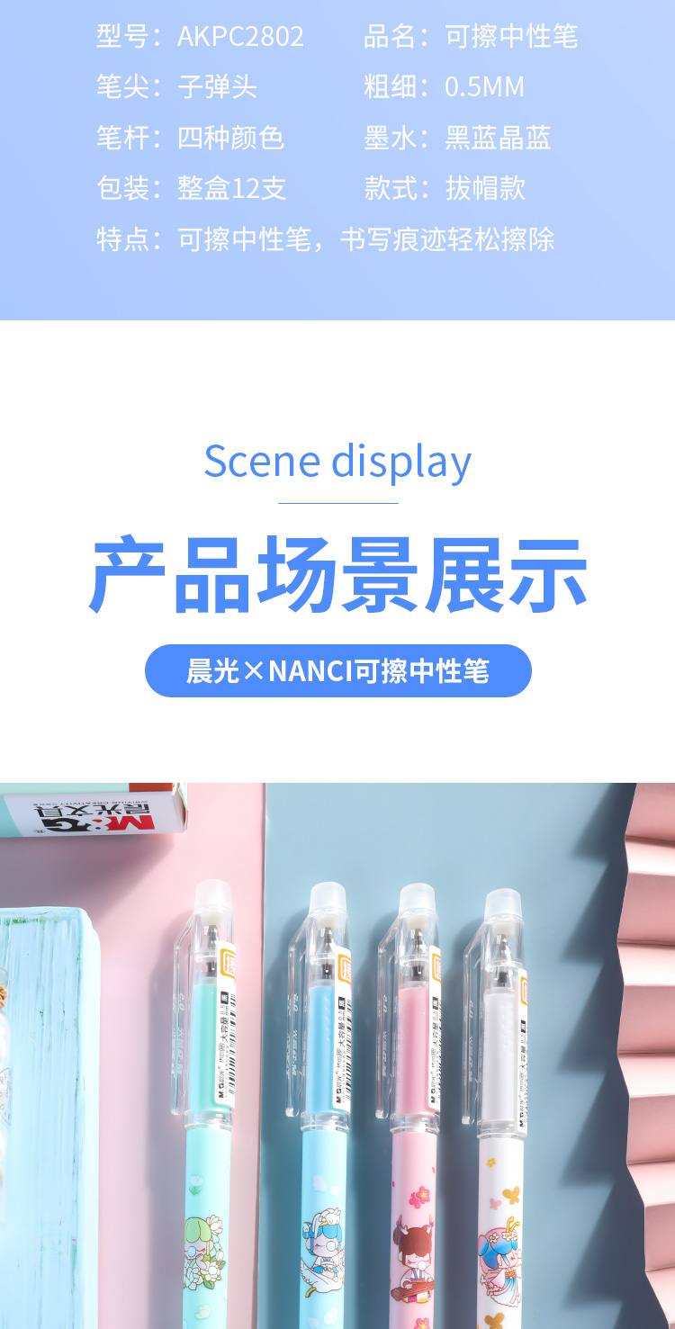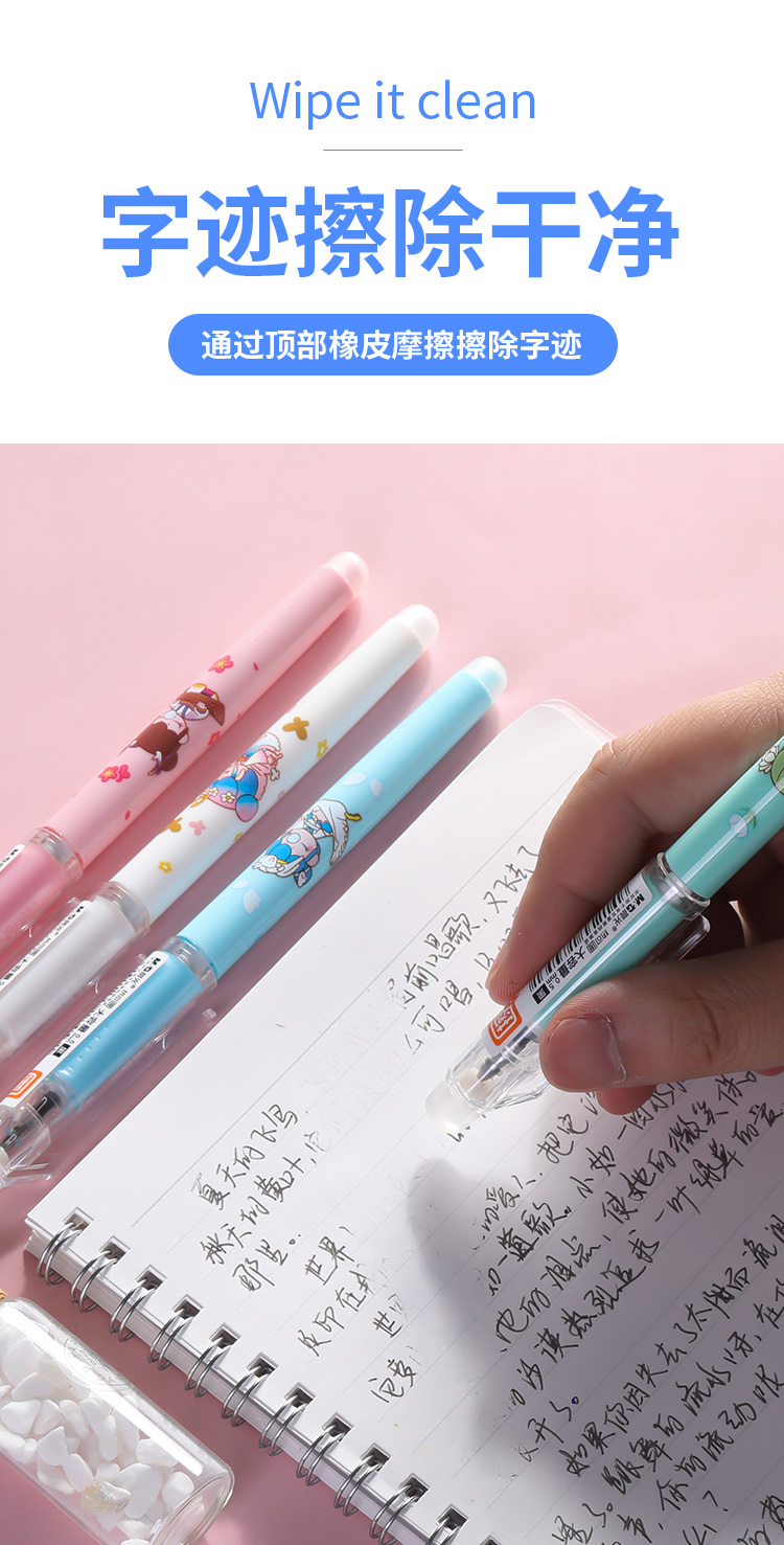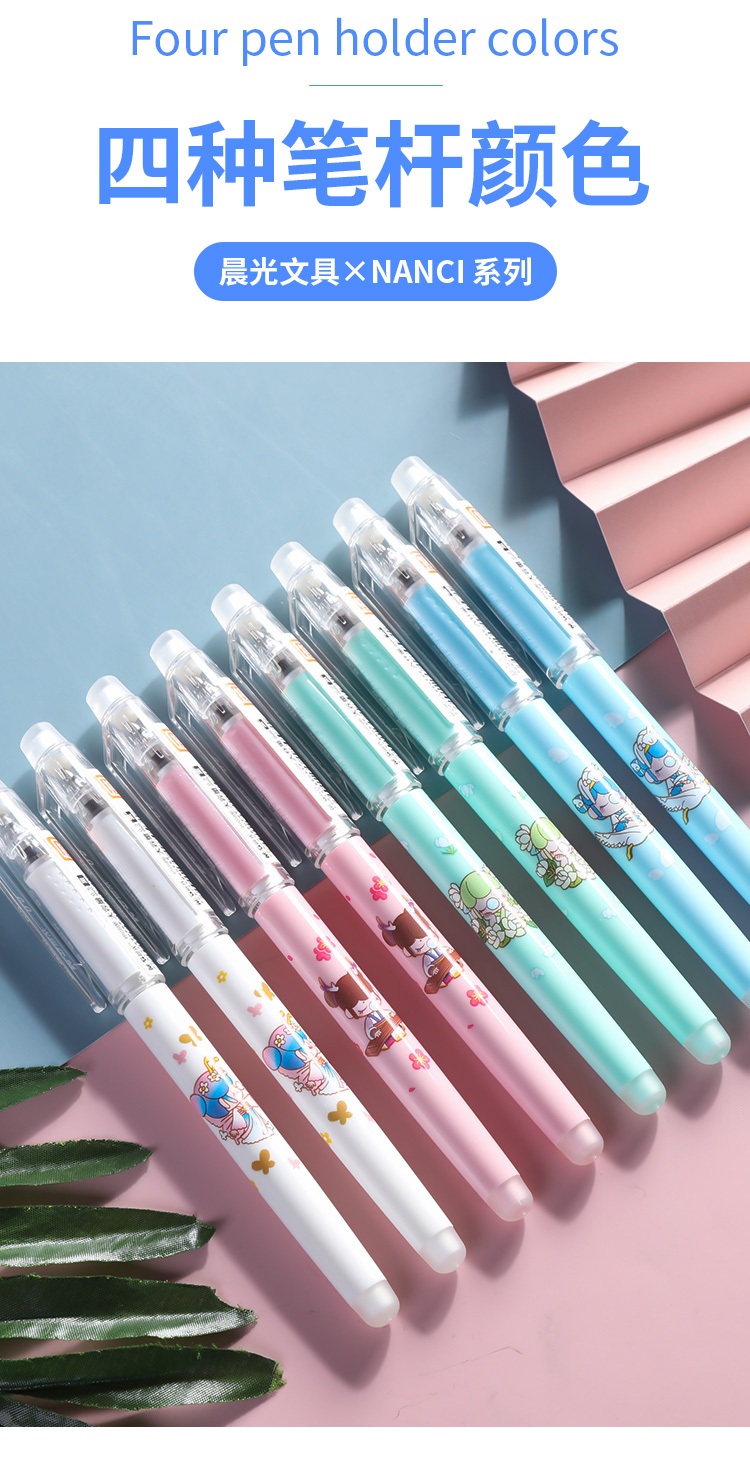 晨光可擦水性笔AKPC2802黑0.5mm大容量子弹头学生用水笔卡通笔