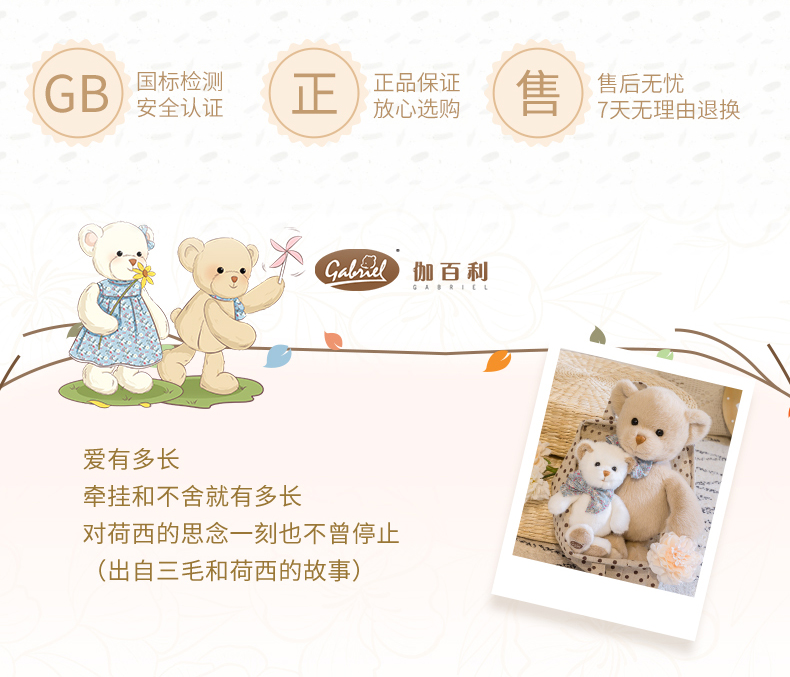 伽百利Gabriel小熊系列玩偶毛绒玩具睡觉抱枕安抚公仔女孩生日礼物
