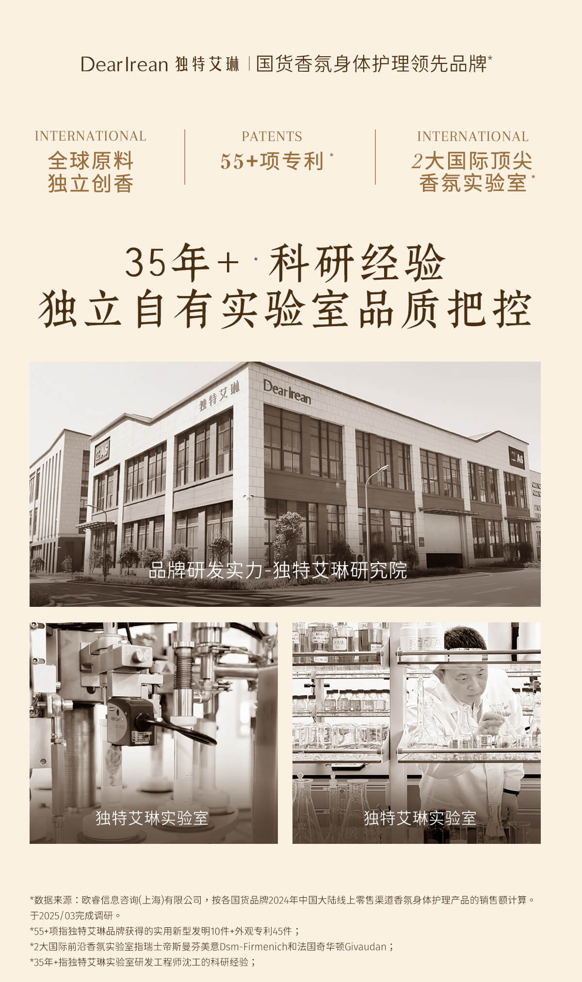 - DearIrean 独特艾琳,高定香氛生活品牌,拥有体•研究所,品牌致力于将高定香氛带入生活,同时倡导“以香之名,带给生活美好方式”的品牌理念,传递精致女性的爱、独立、自信。