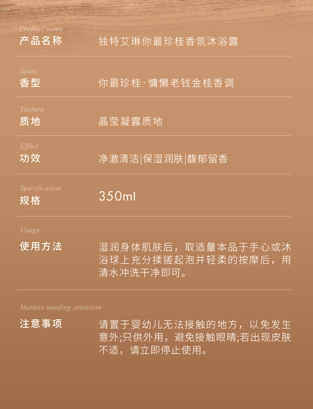 【侯明昊同款丨你最珍桂】DearIrean 独特艾琳你最珍桂全身保湿清洁沐浴露350ml(官方自营)