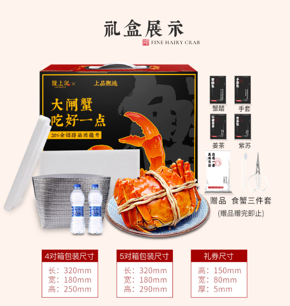 【活蟹】隆上记大闸蟹公蟹4.0两/只 母蟹3.0两/只 5对10只装螃蟹礼盒
