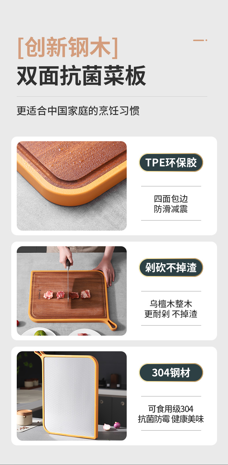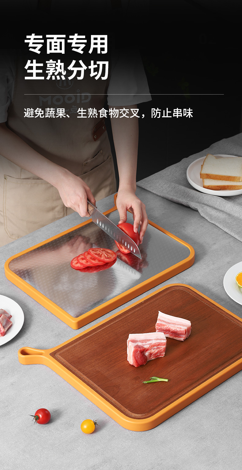 钢木双拼抗菌砧板(橙色)MYD-9065-1