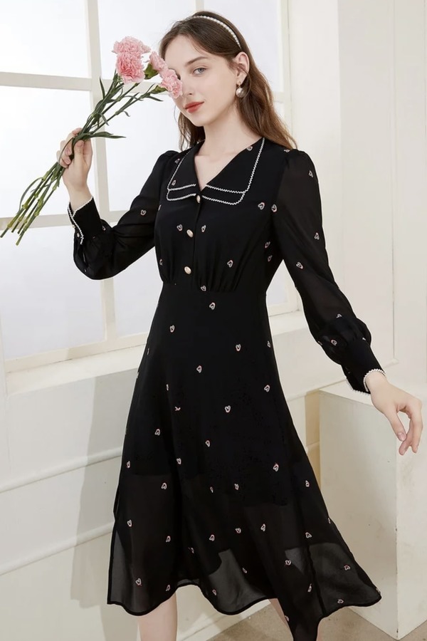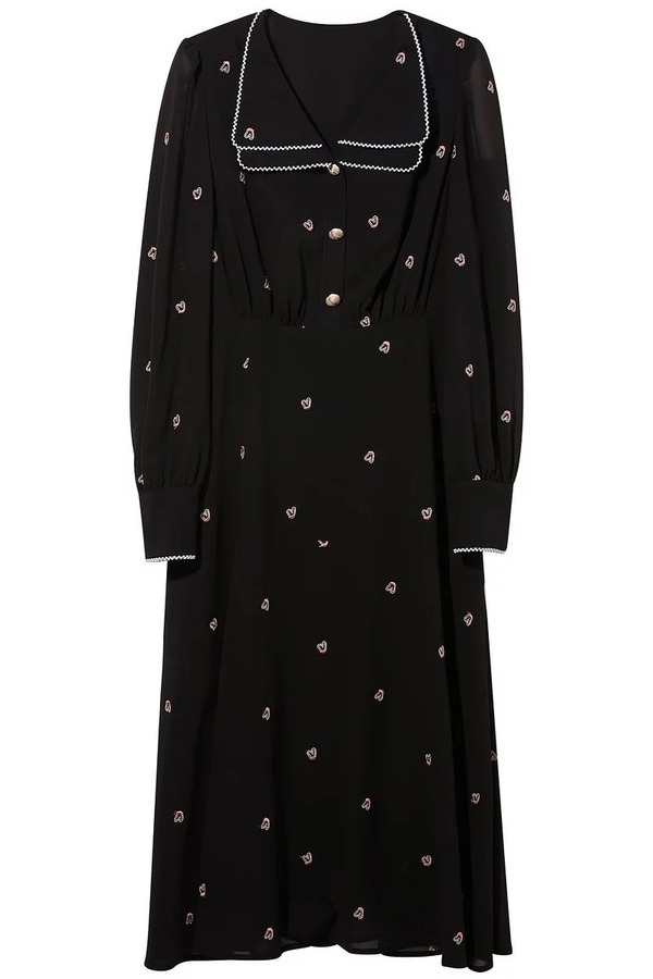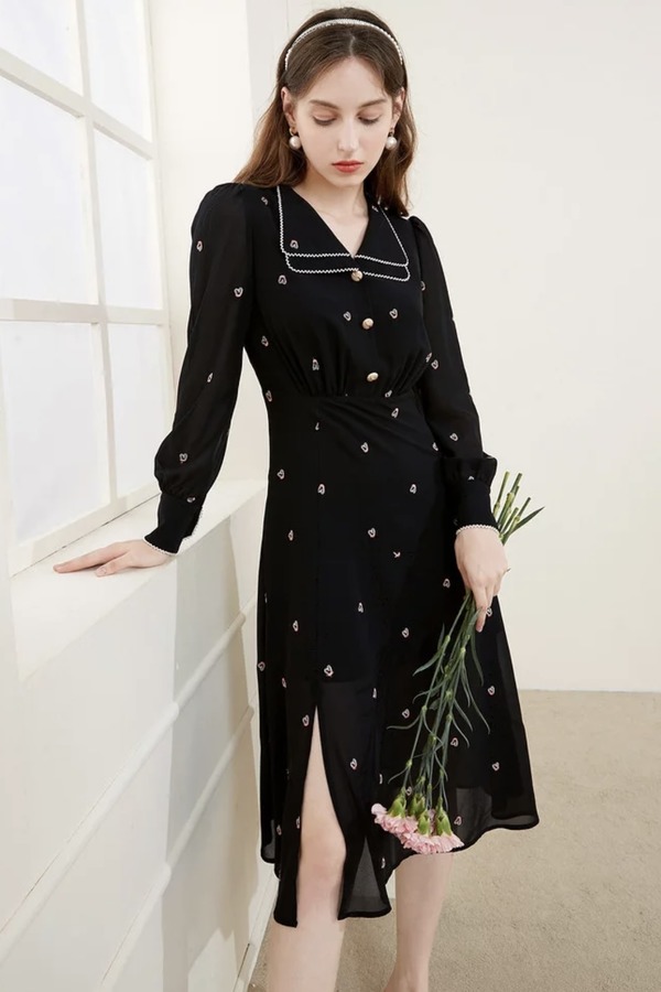 三COLOUR 黑色刺绣甜美连衣裙 15710