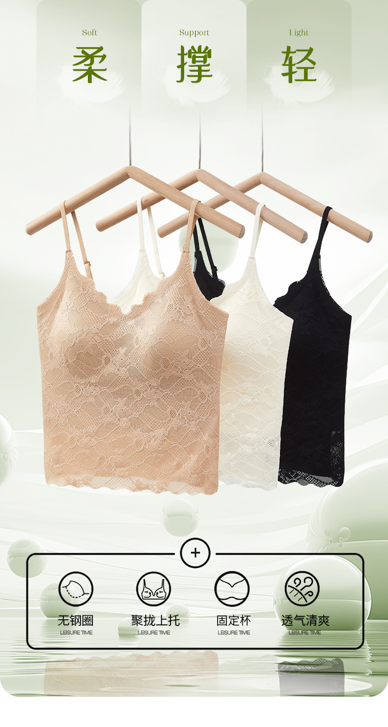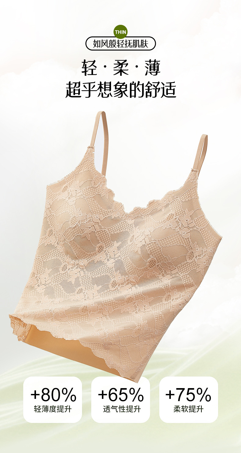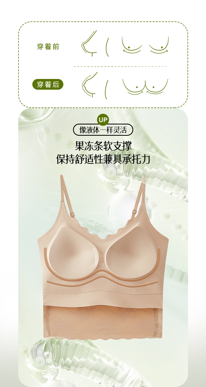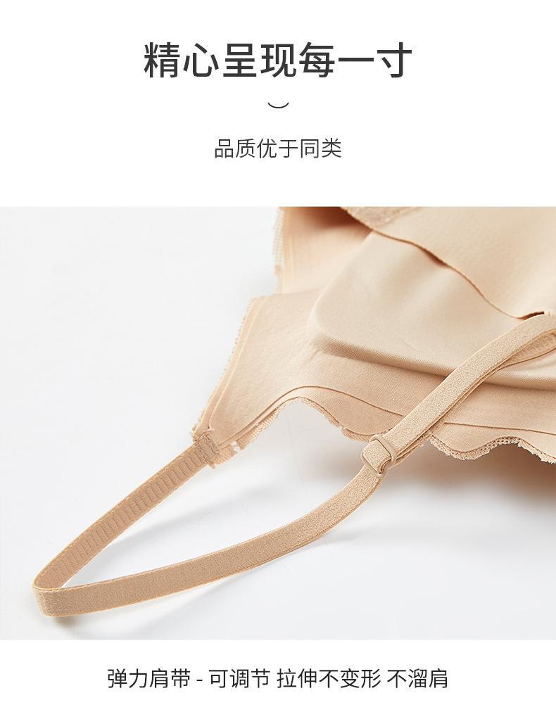 新品《再也不怕胸下垂》飘逸轻盈的蕾丝,果冻BRA 软而有型支撑,轻松聚拢上托,再现窈窕身姿。没有钢圈的束缚,一字美背,双C提拉,舒适透气的质感,让美背更自由呼吸,尽显自信美态!