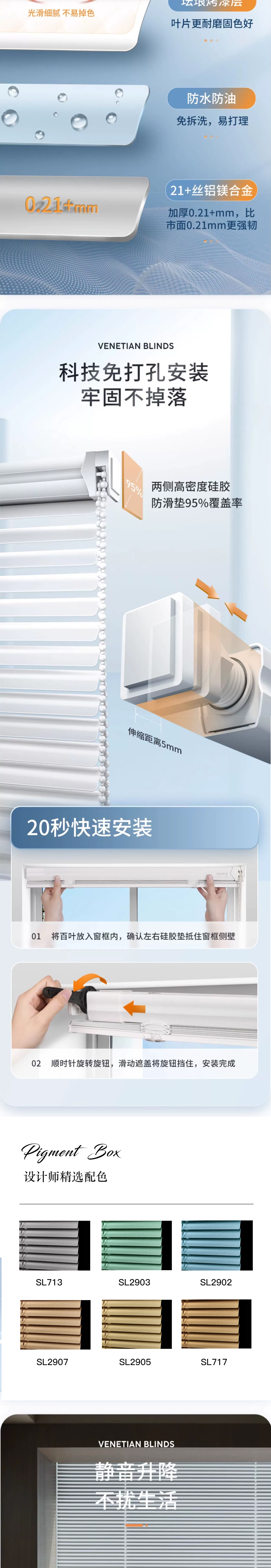 【铝百叶-银铃SL713】卫生间厨房浴室办公室/免打孔百叶窗帘/铝合金/窗户遮光升降卷帘