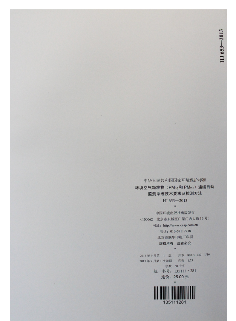 HJ 653-2013 环境空气颗粒物(PM10和PM2.5)连续自动检测系统技术要求及检测方法 国家标准GB 环境保护 135111281