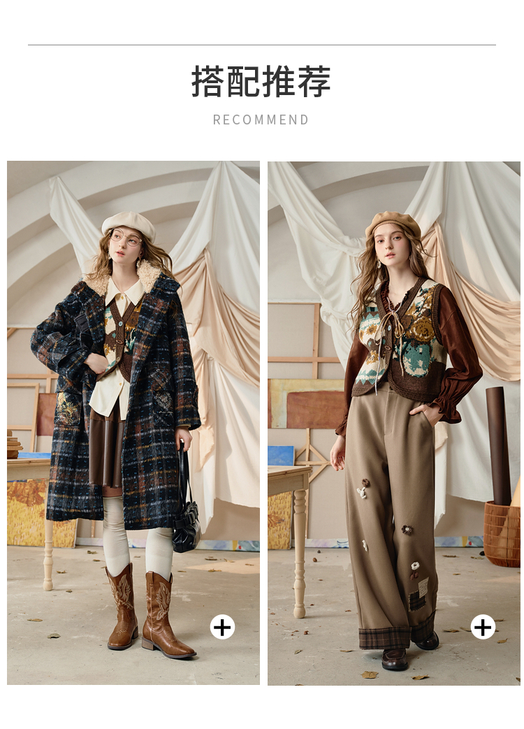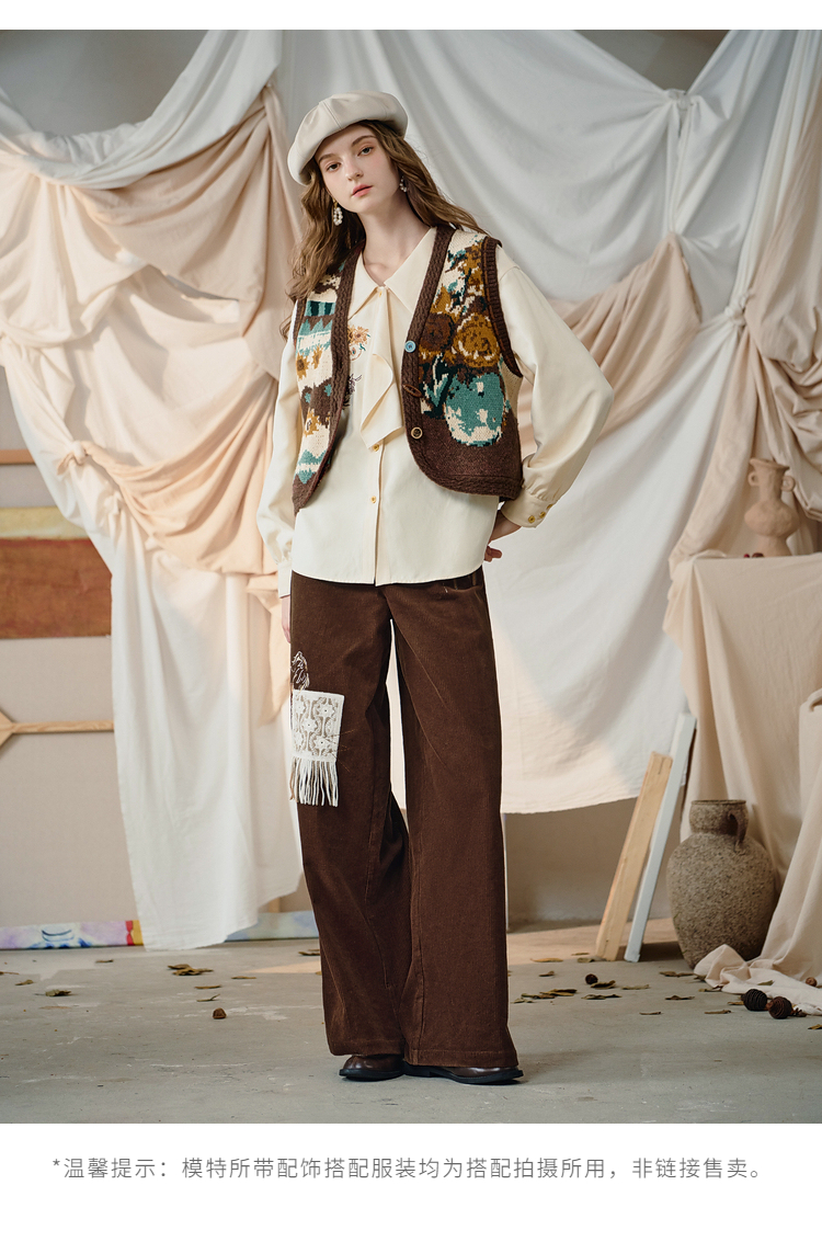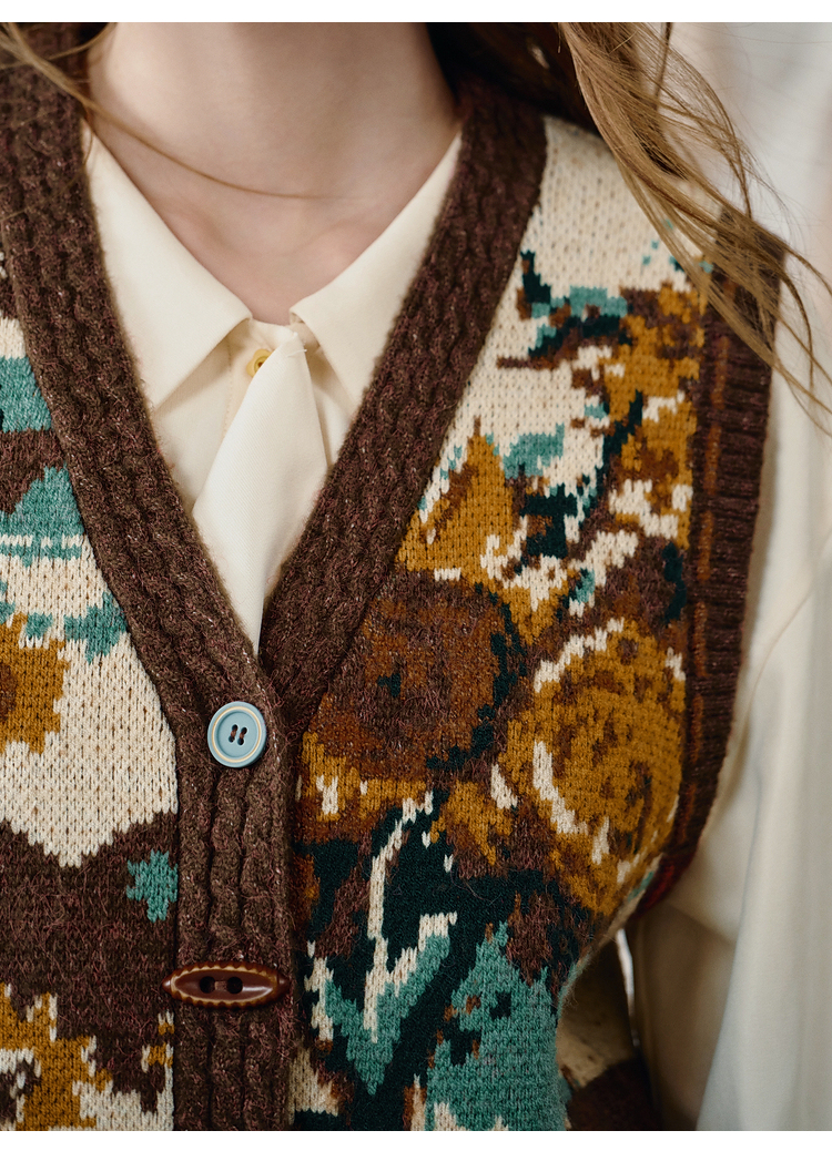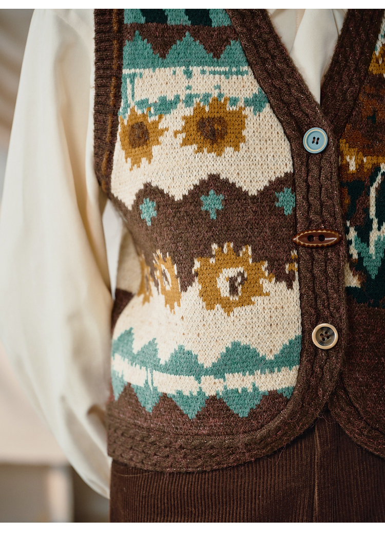 两三事梵高文艺松茶可可2025秋冬新款几何图形纽扣花色马甲女宽松