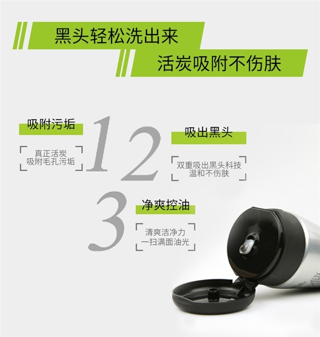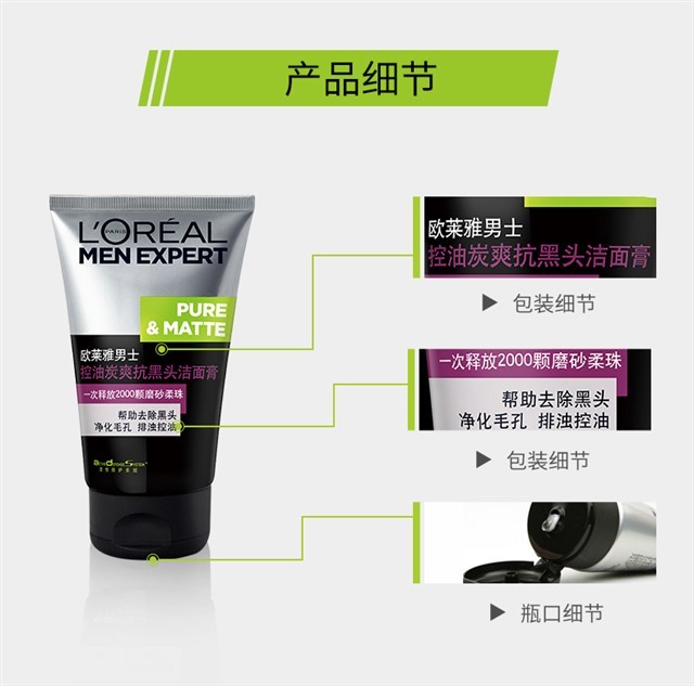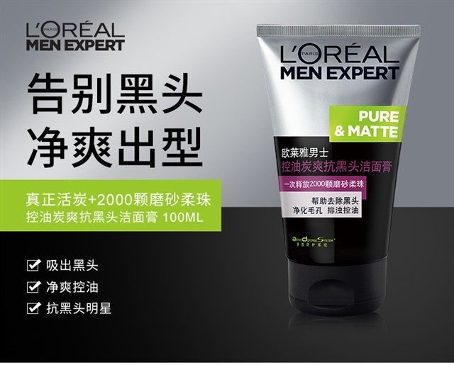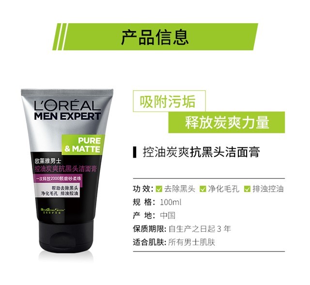 欧莱雅男士控油炭爽抗黑头洁面膏100ml