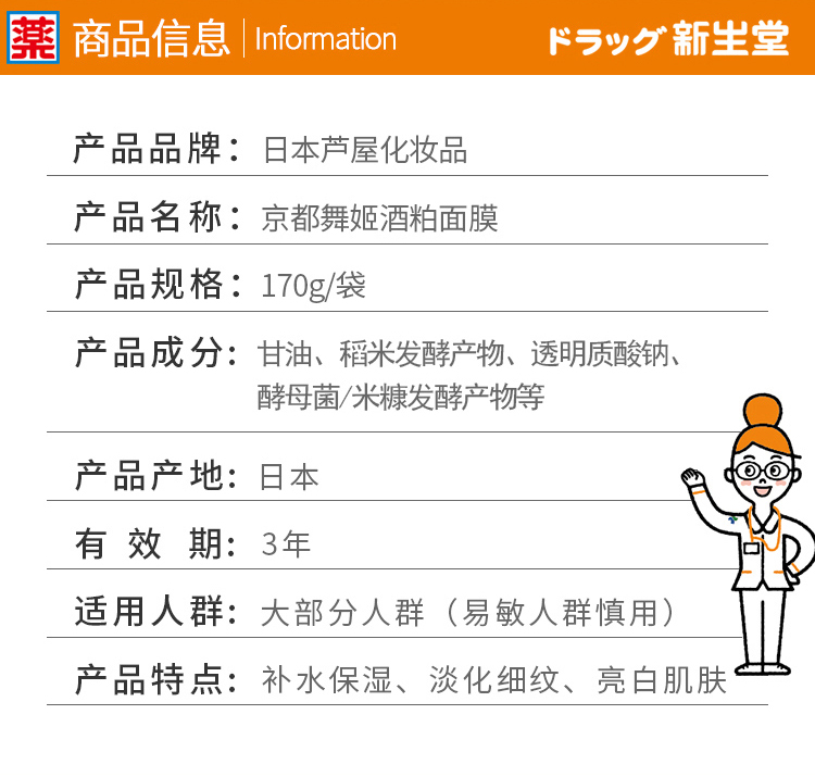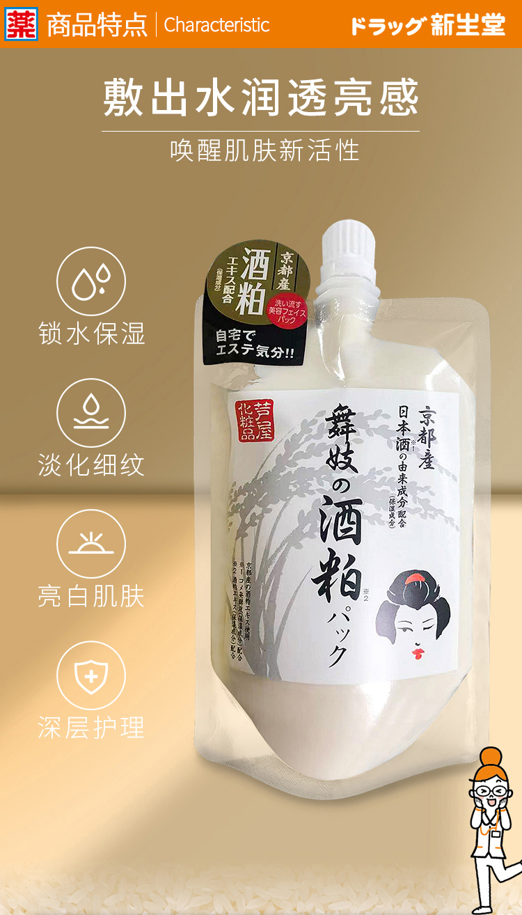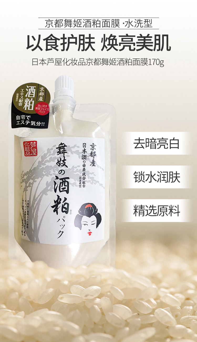 日本直邮 芦屋京都舞姬酒粕面膜保湿靓白细致毛孔170g/袋