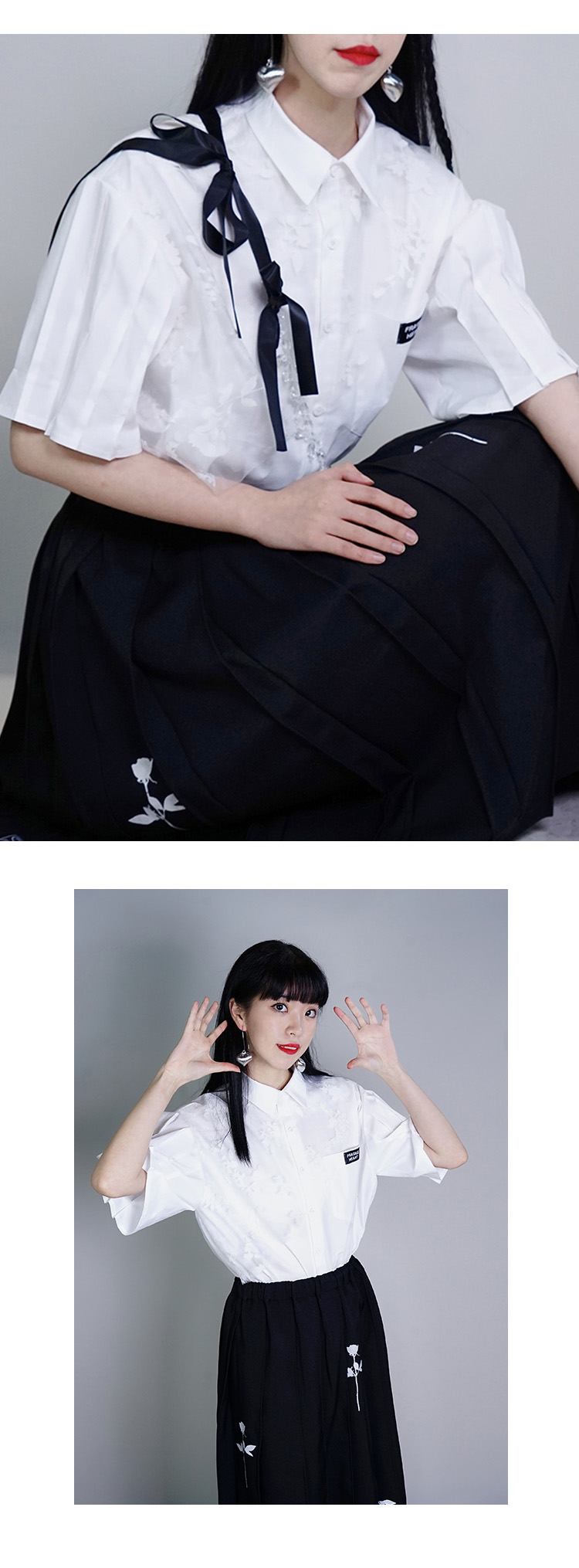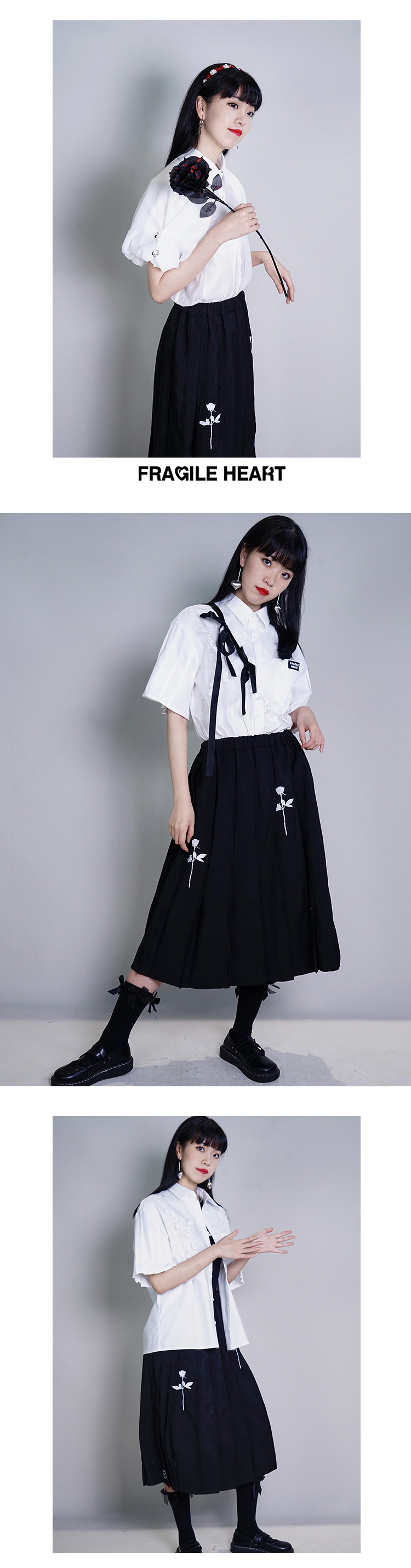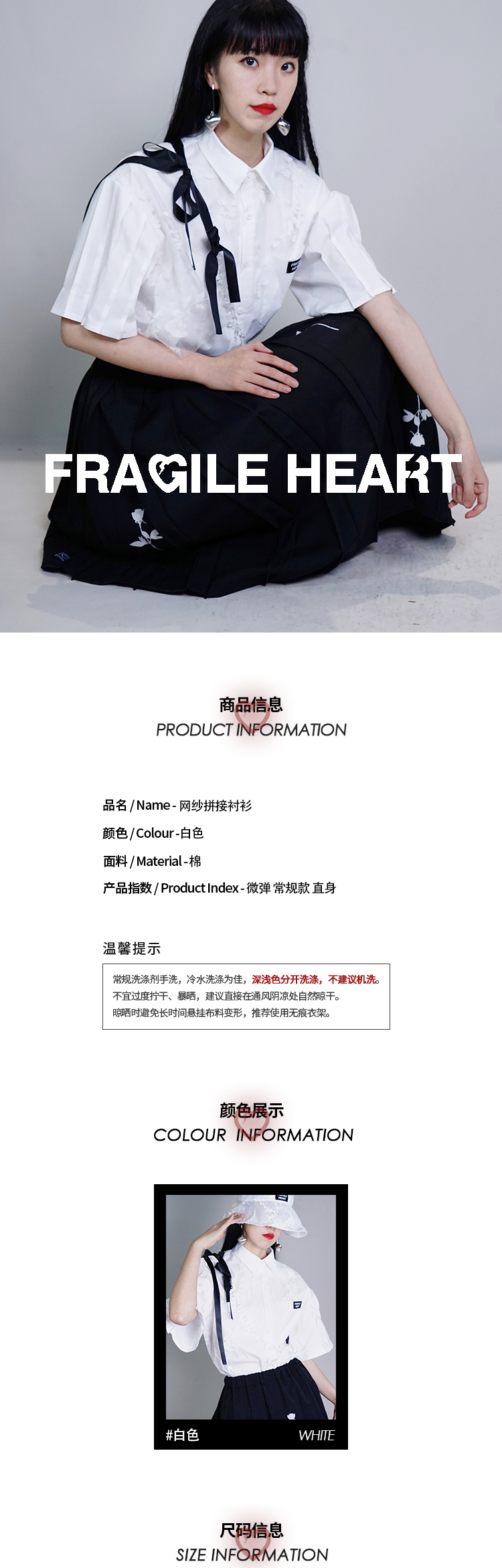 fragileheart易碎商店白色衬衫女春设计感小众学院风短袖衬衣薄款