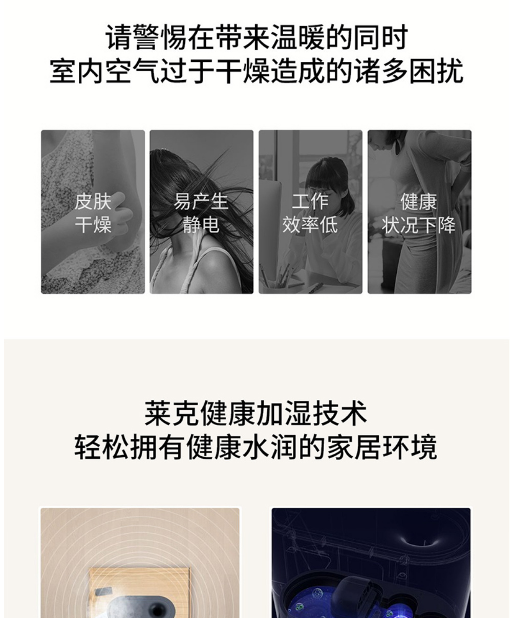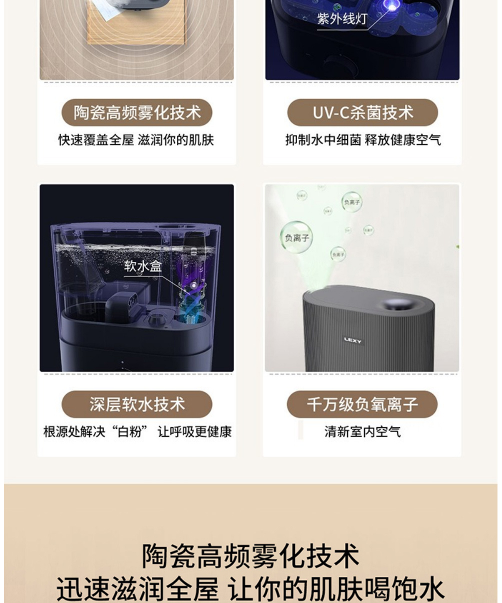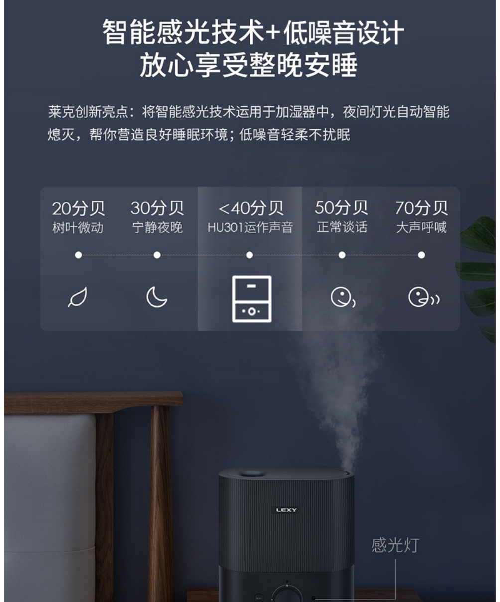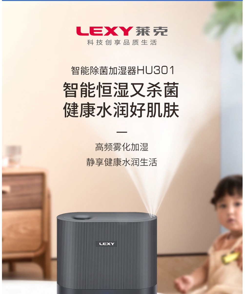 LEXY莱克家用加湿器 孕妇婴儿卧室空调房空气净化加湿器加湿 办公室大雾量加湿机 HU301 灰色