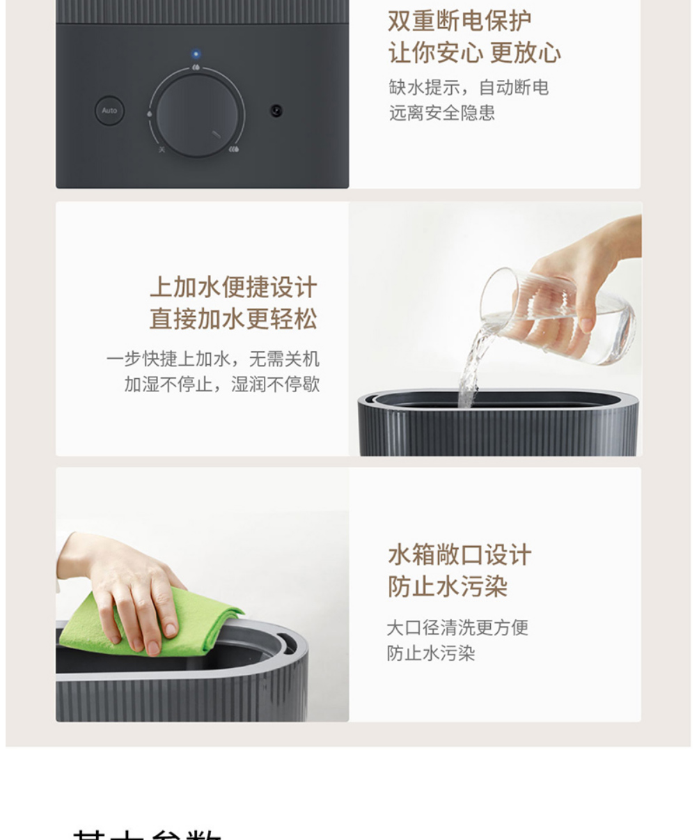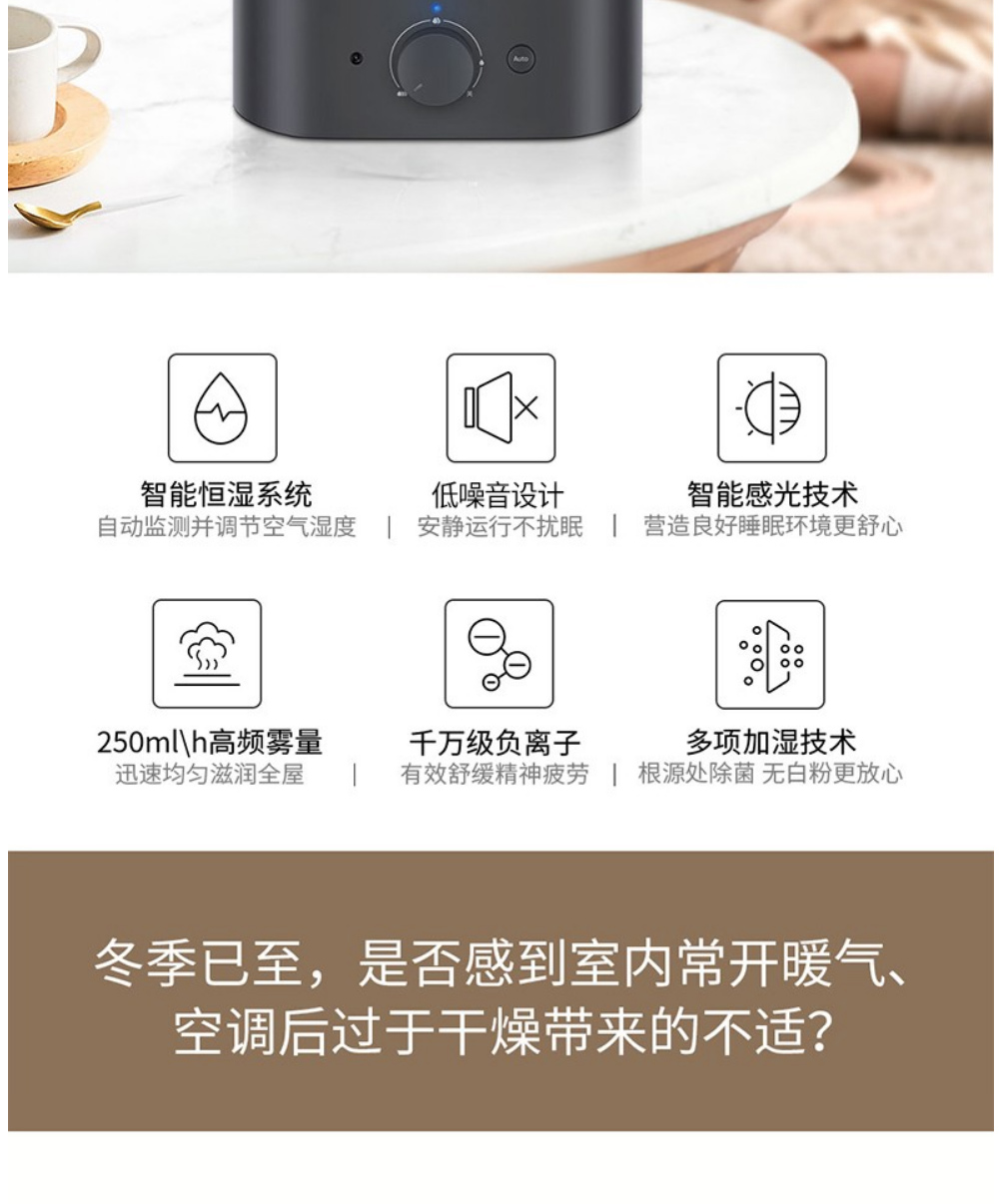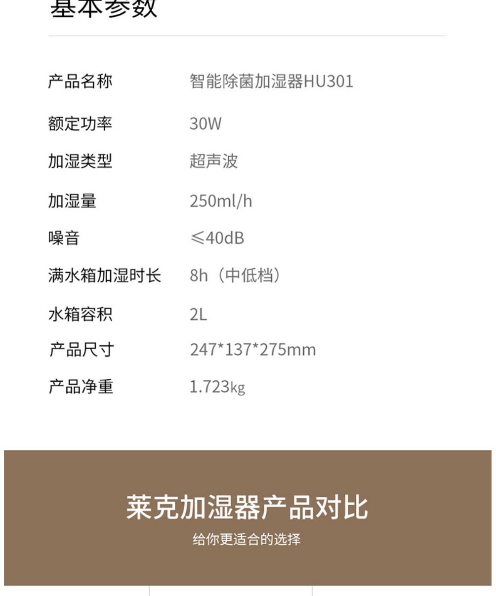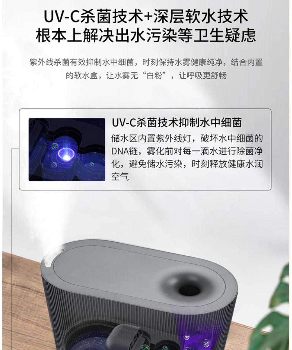 LEXY莱克家用加湿器 孕妇婴儿卧室空调房空气净化加湿器加湿 办公室大雾量加湿机 HU301 灰色
