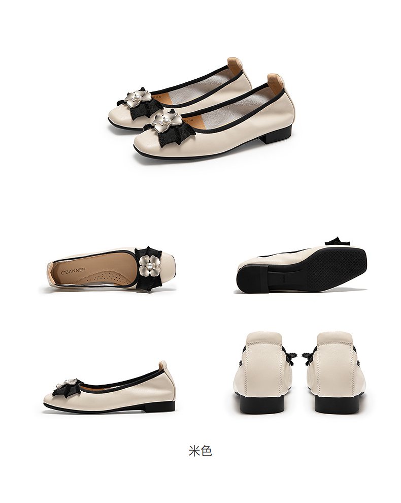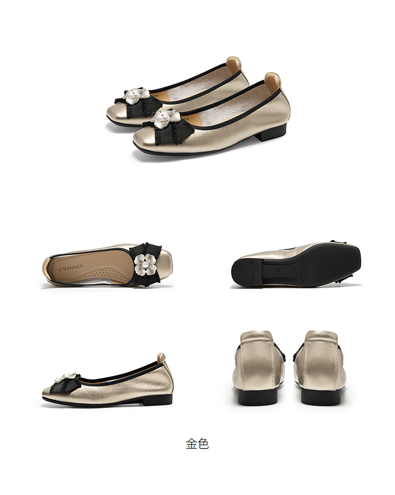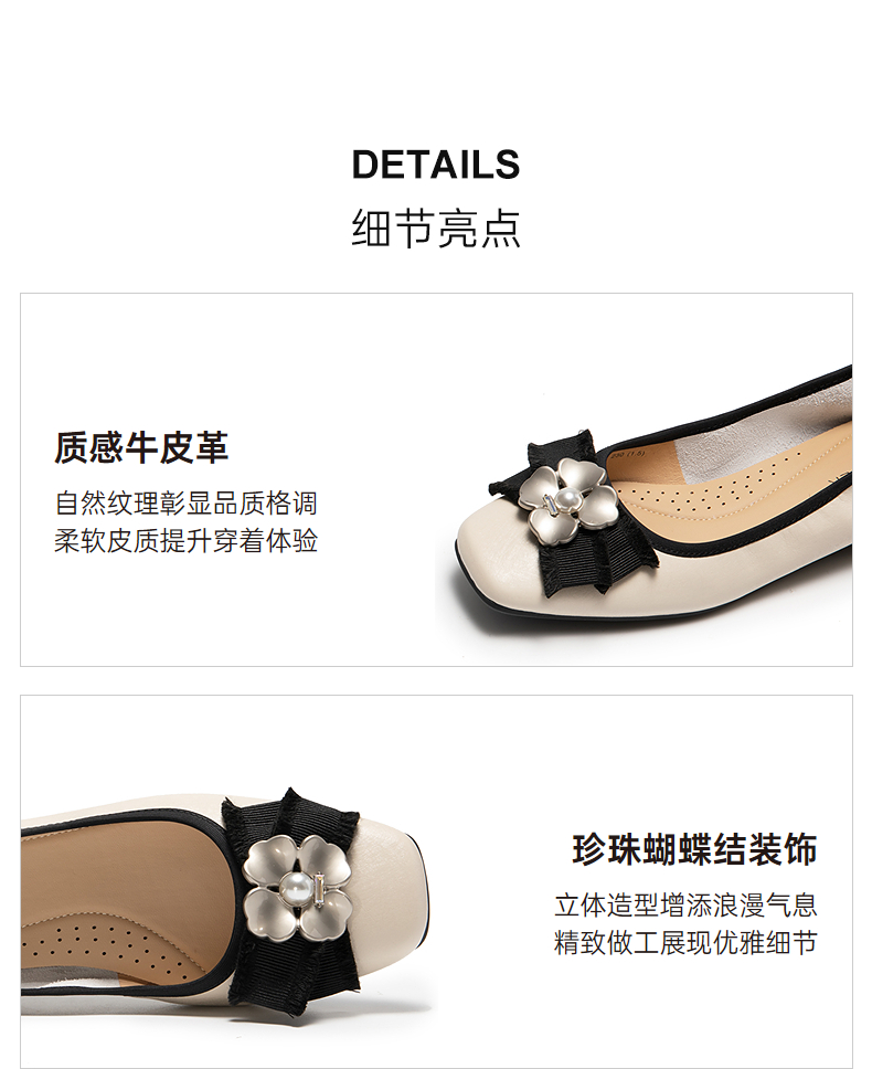 千百度蝴蝶结低跟浅口单鞋女小香风晚晚鞋A25411532