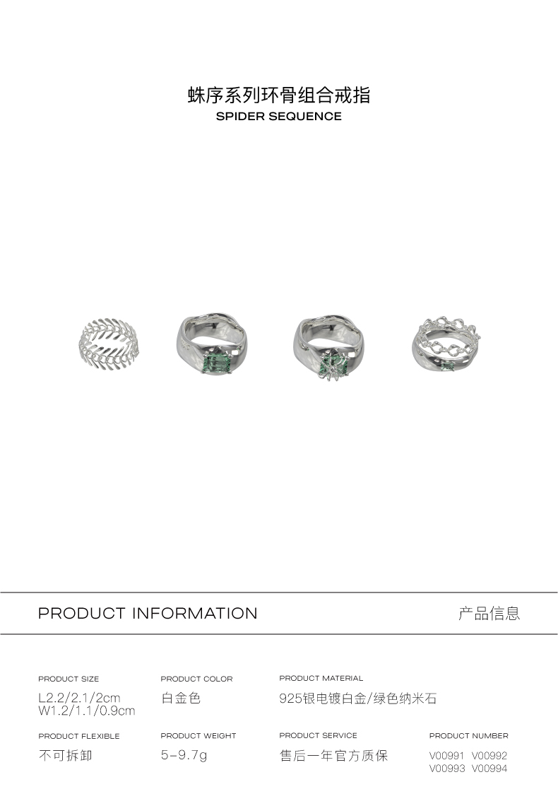 KVK环骨组合925银戒指2021新款轻奢冷淡风情侣对戒时尚个性指环女