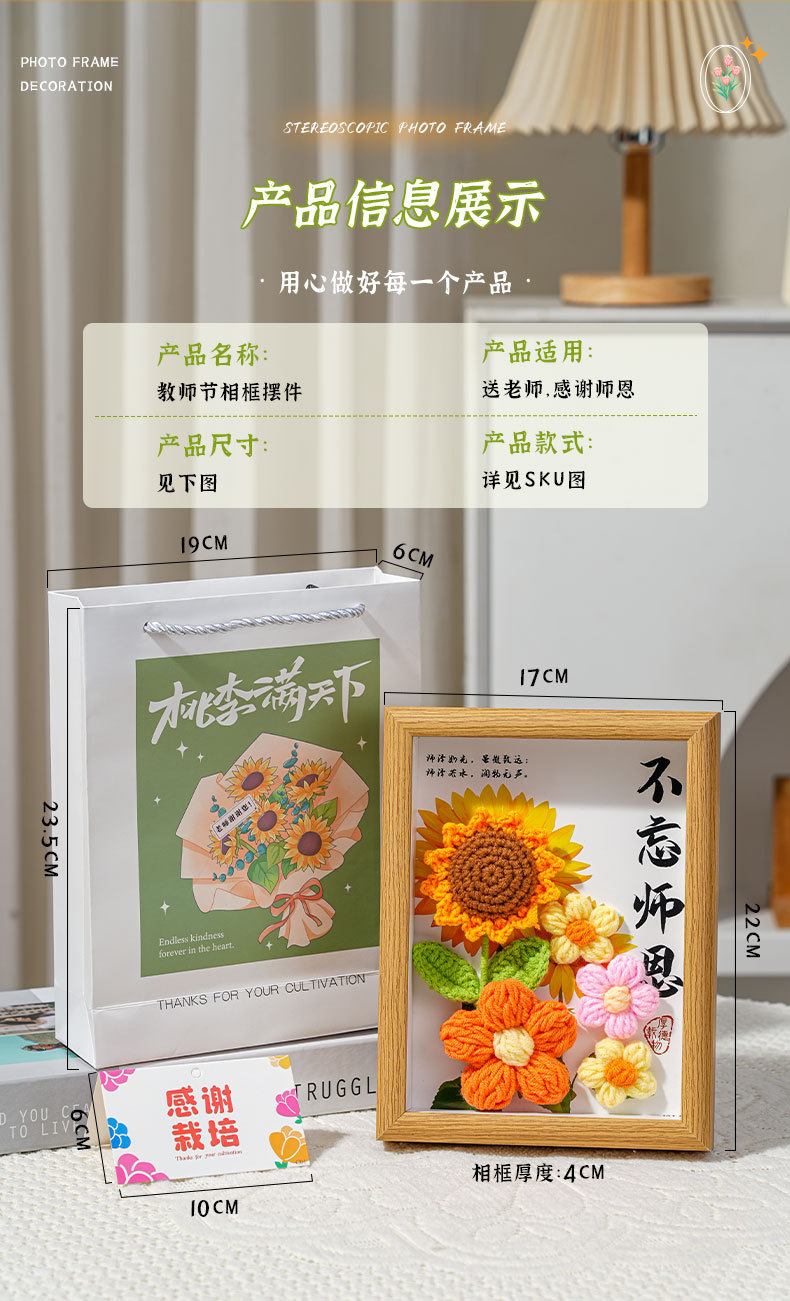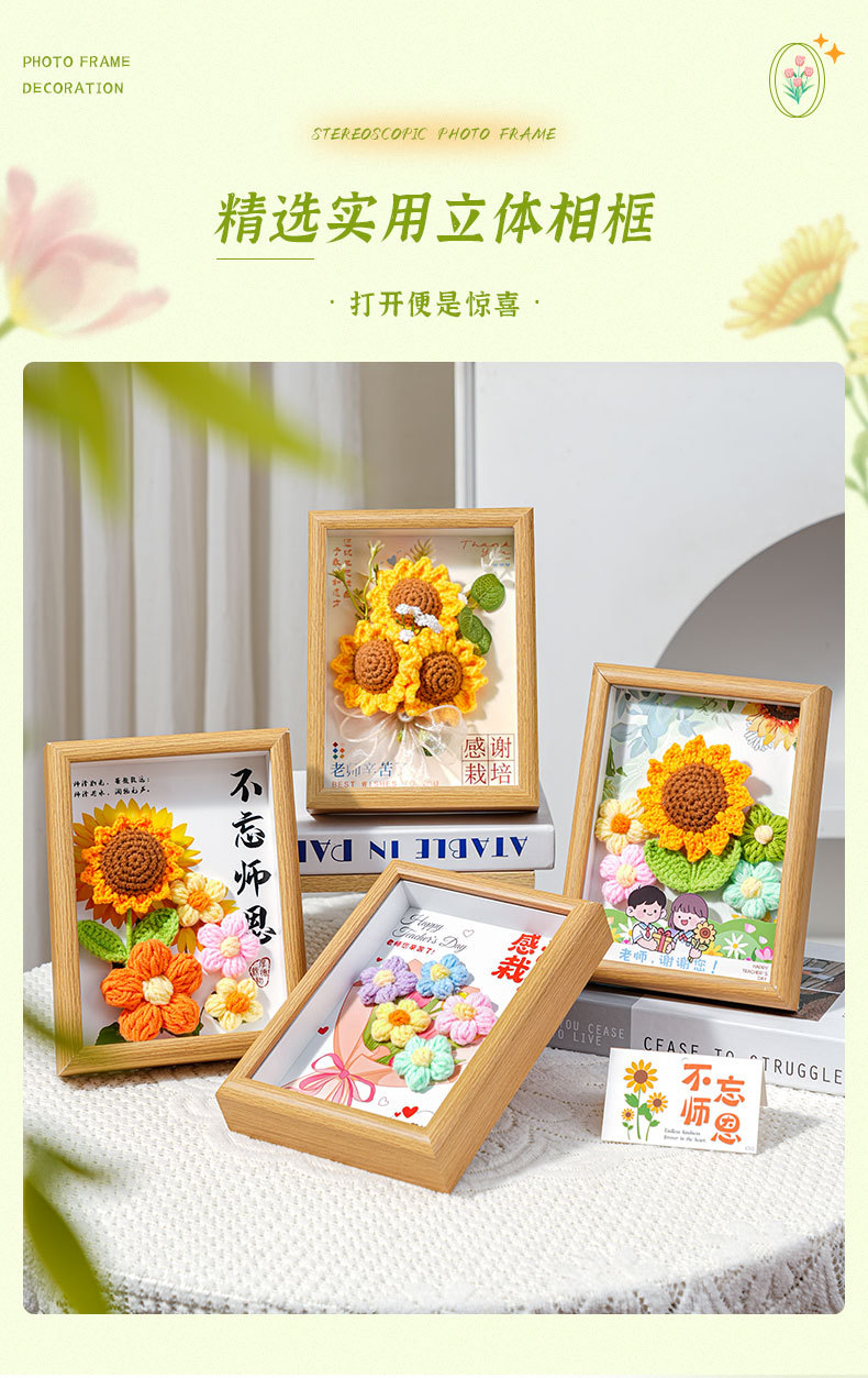 教师节礼物手工钩织成品向日葵针织永生花礼品摆件伴手礼相框画框