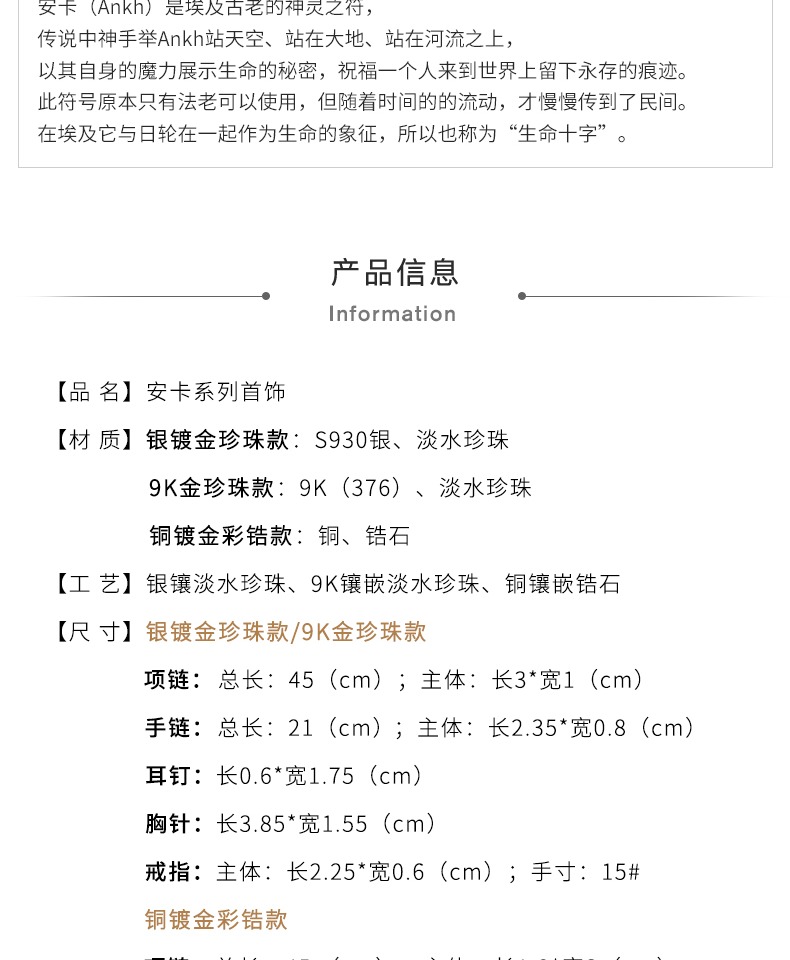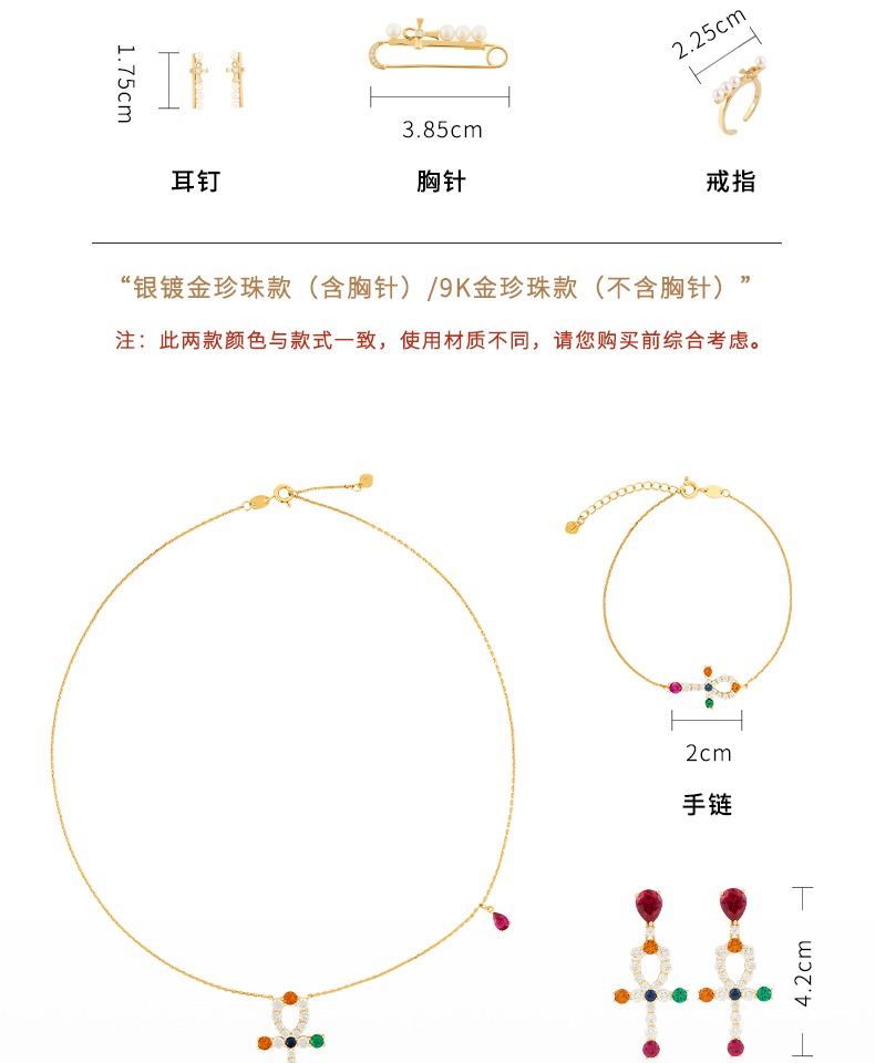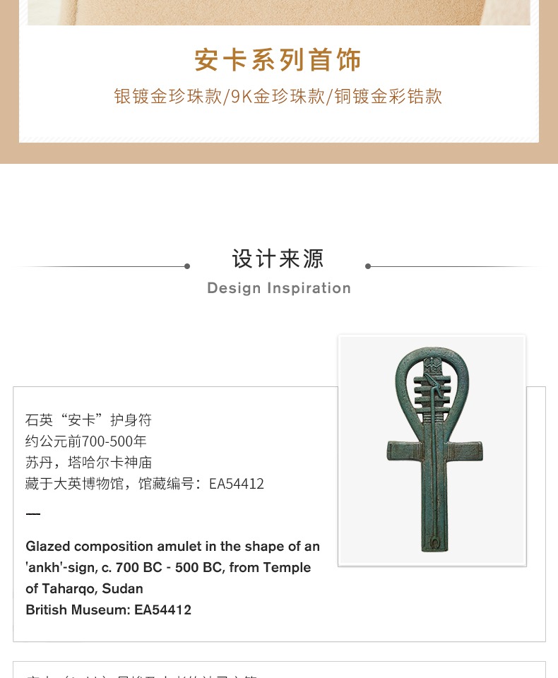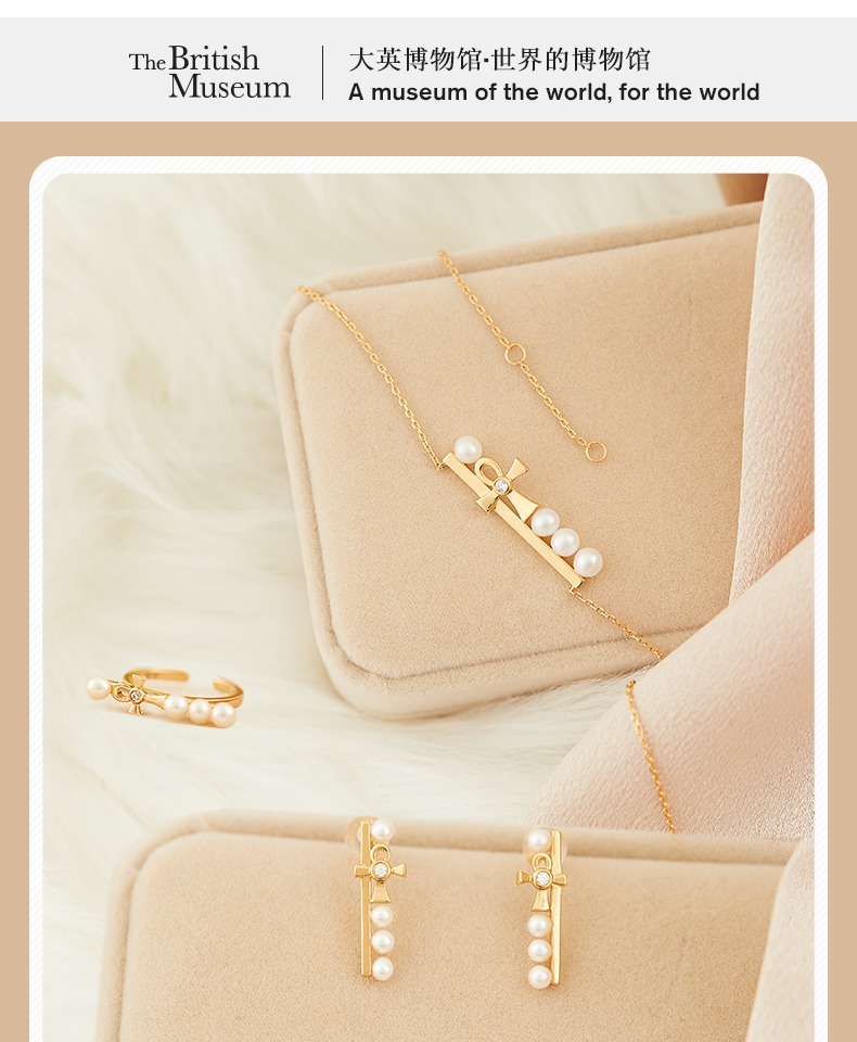 大英博物馆官方安卡系列首饰项链手链耳钉胸针镀金珍珠彩锆9K饰品