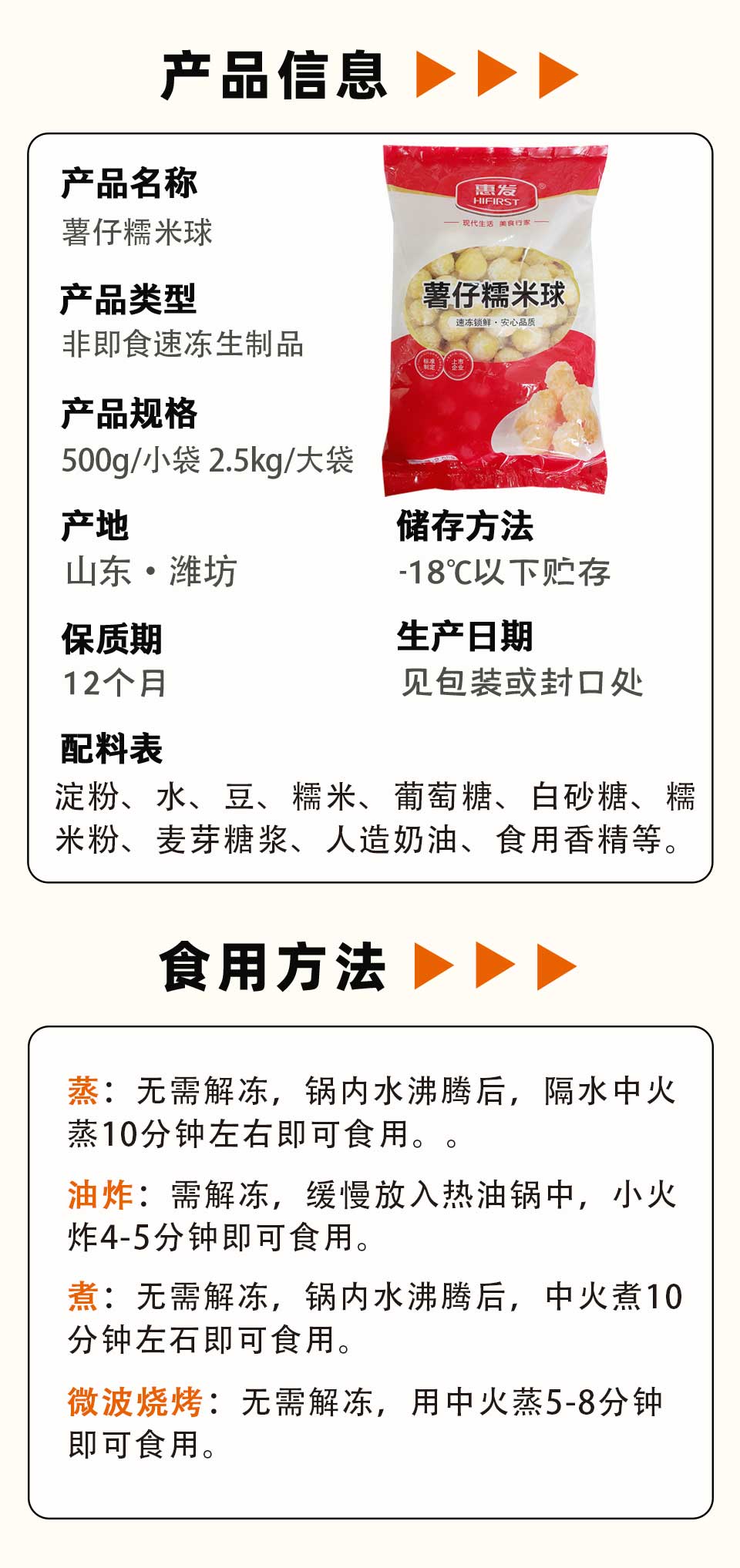 惠发薯仔糯米球 500g/小袋 2.5kg/大袋 4袋/件