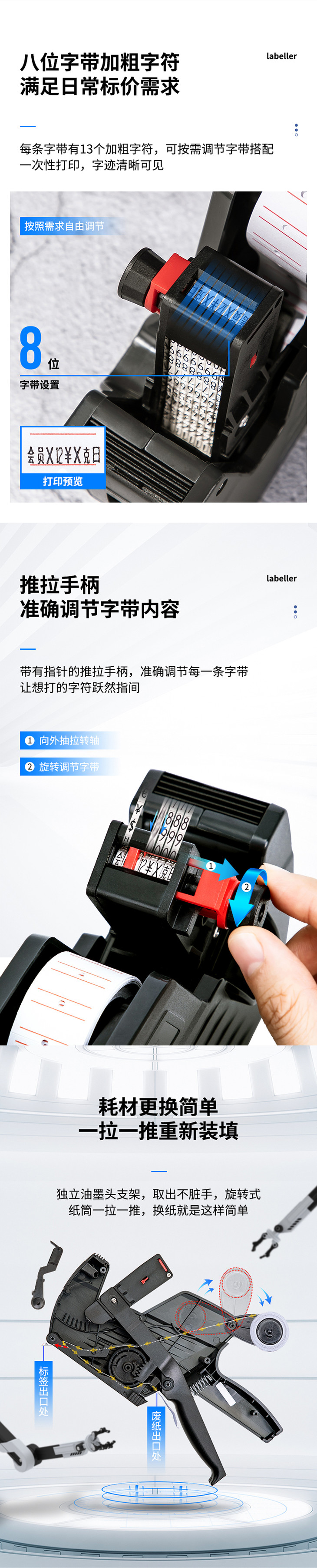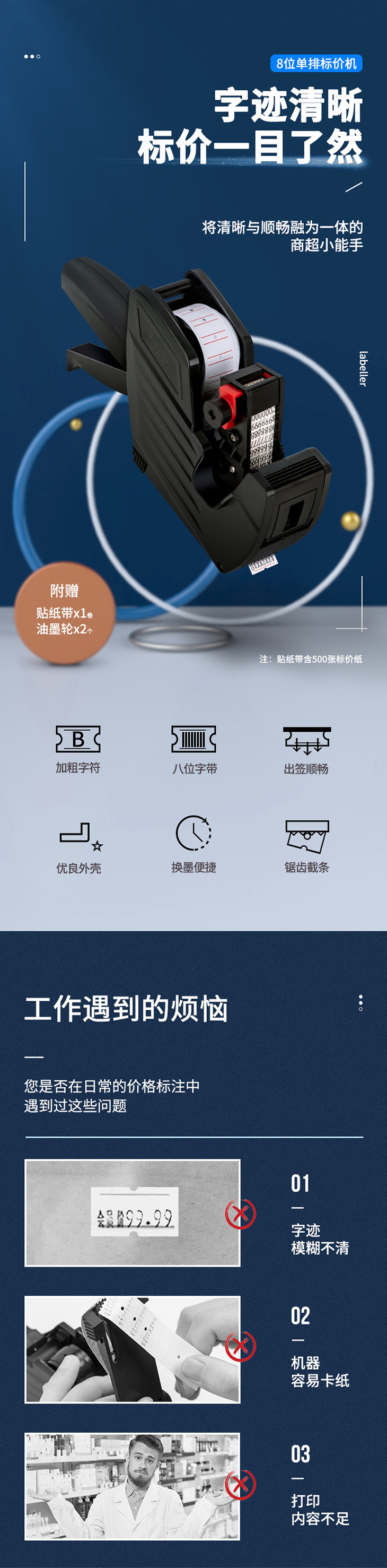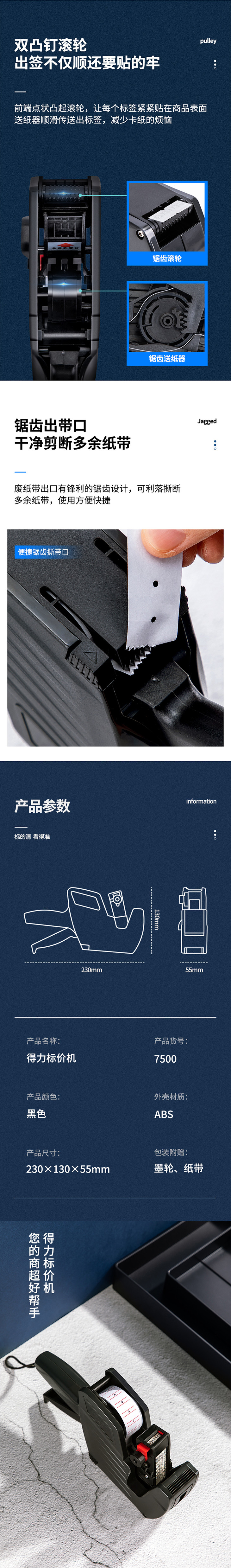 得力8位单排标价机 商超标签打码机/打价器 办公用品 灰色7500