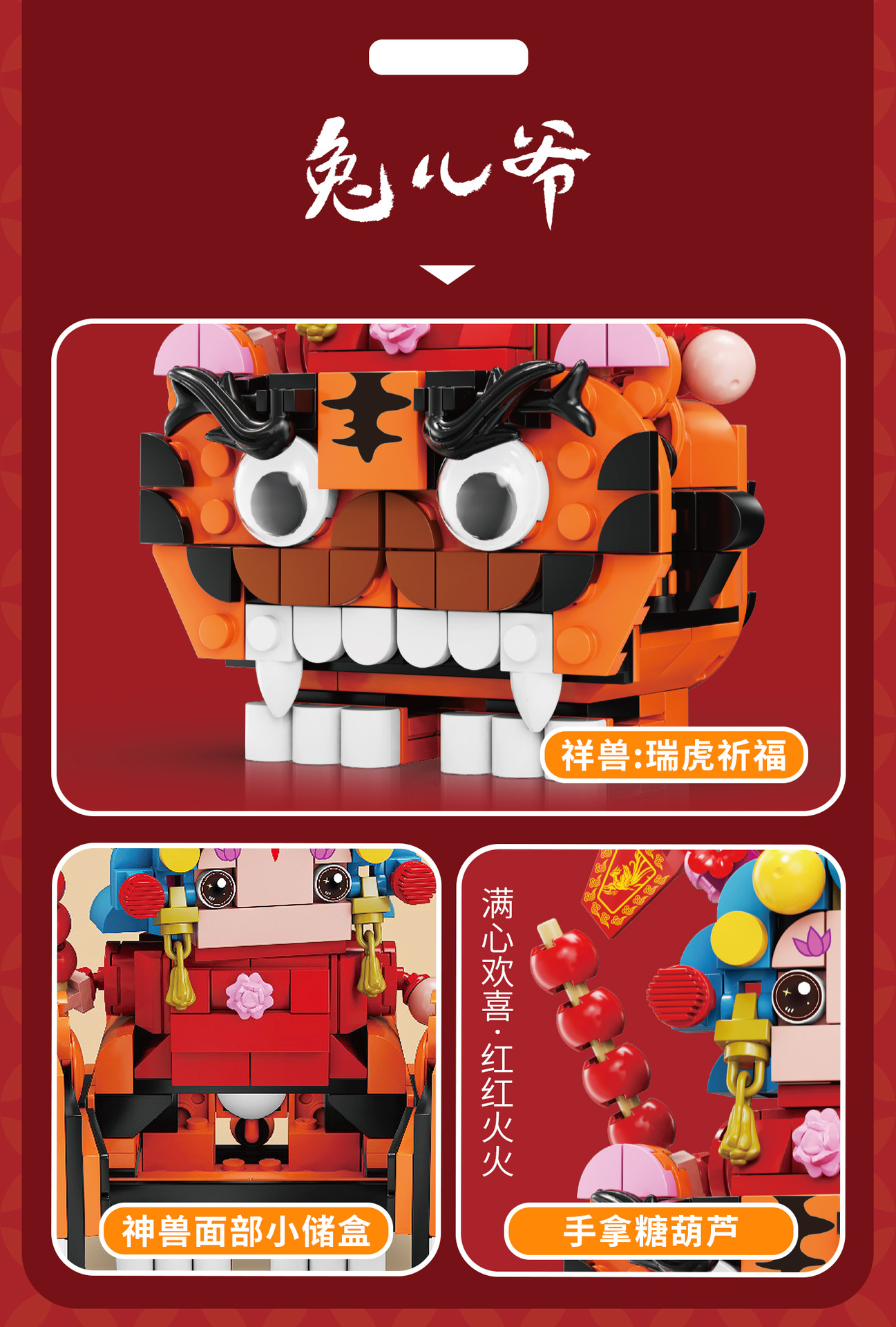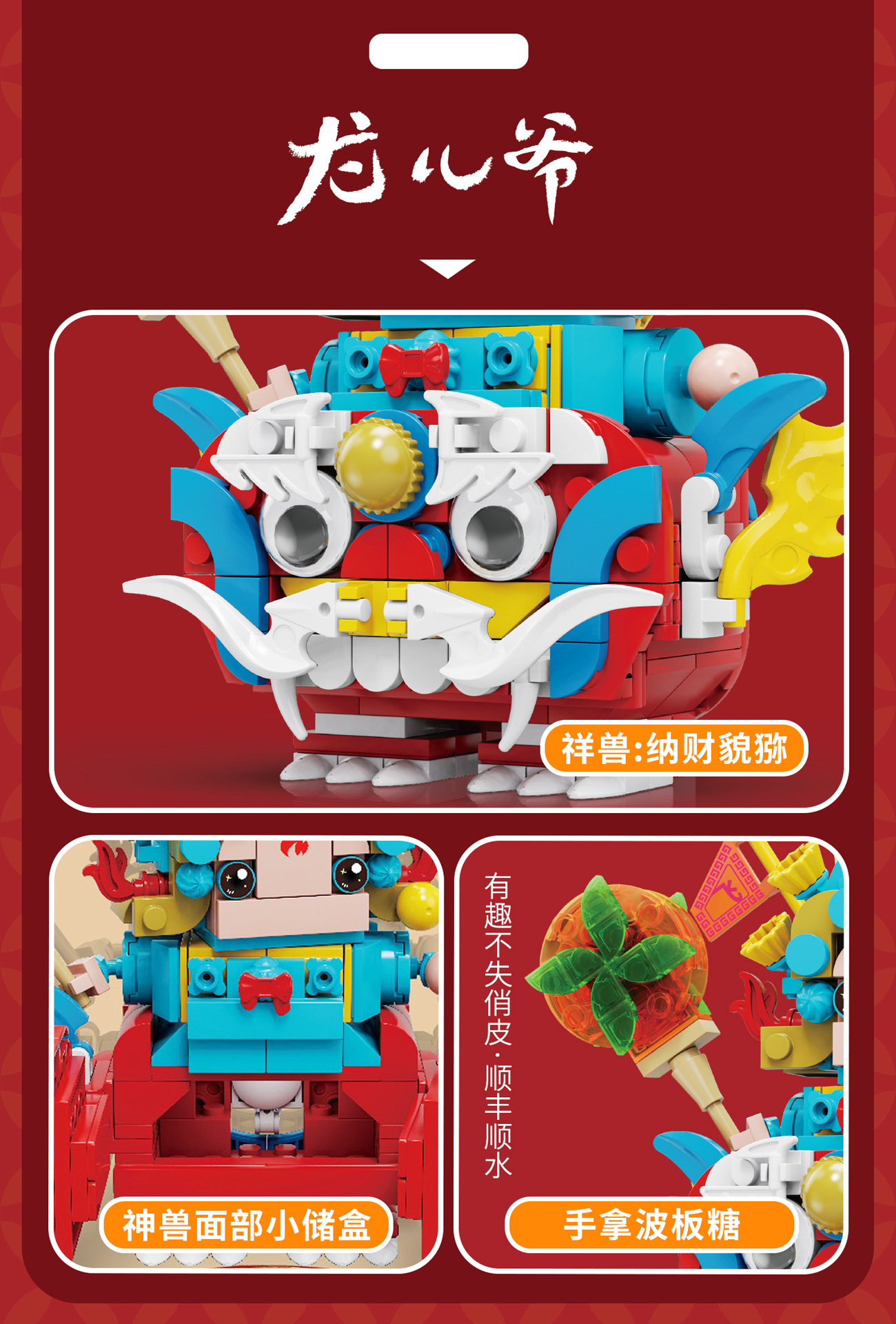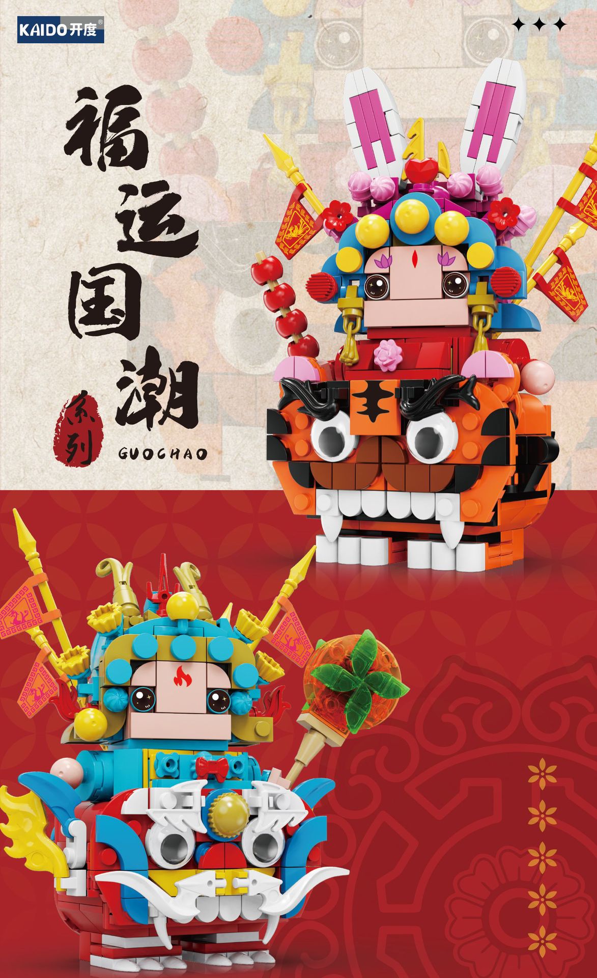 【kaido开度福运国潮系列公仔】兼容乐高拼装积木玩具 益智儿童桌面摆件 潮品摆件寓意美好创意拼搭亲子玩具