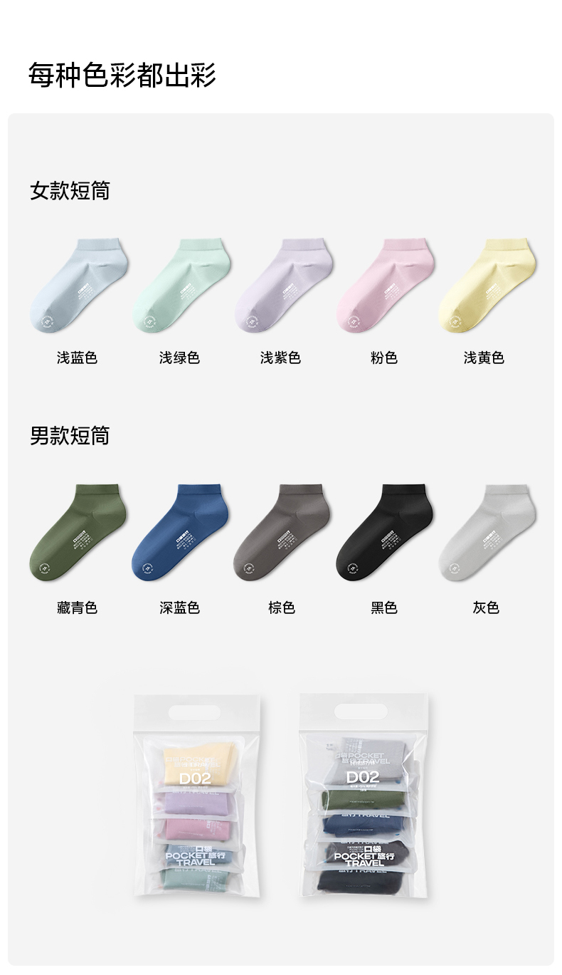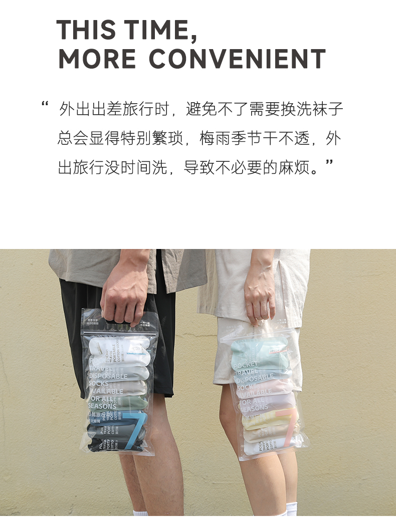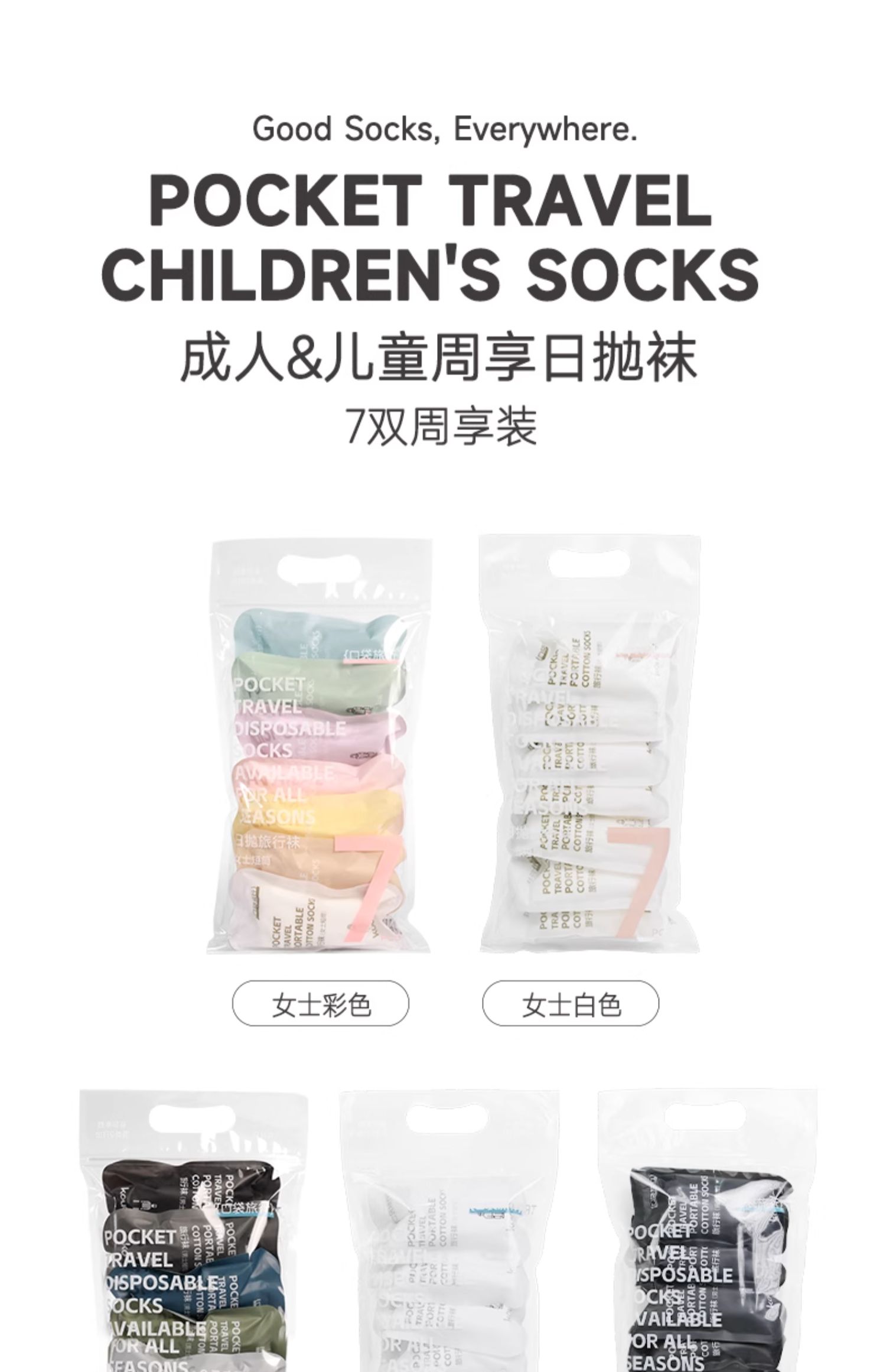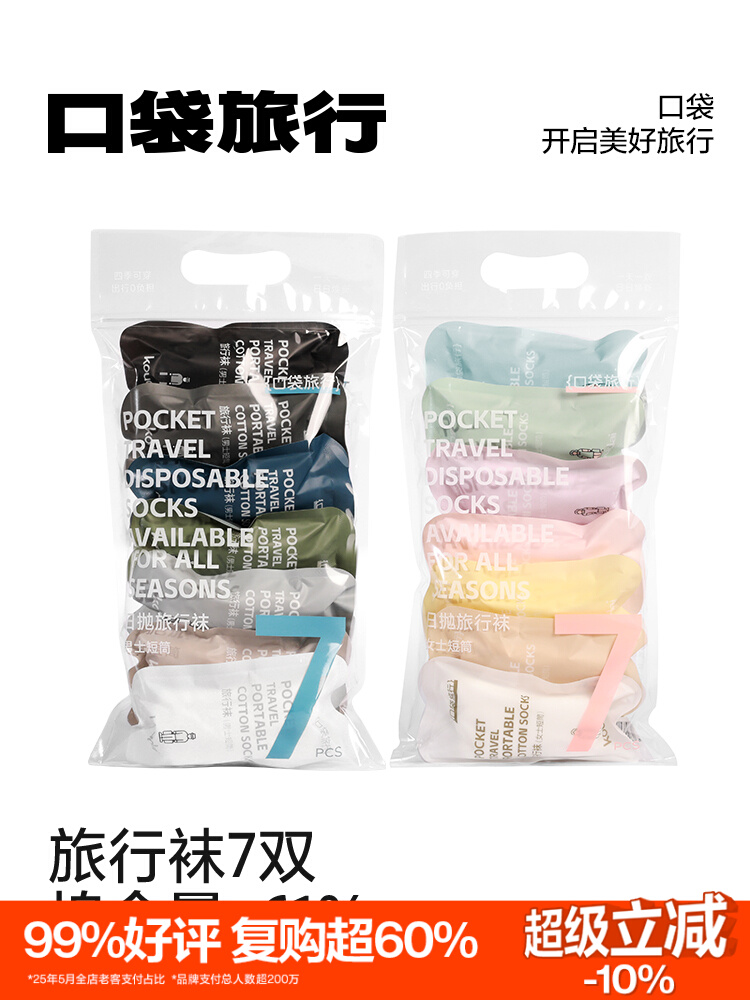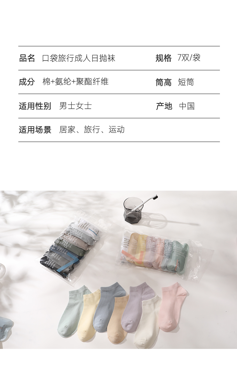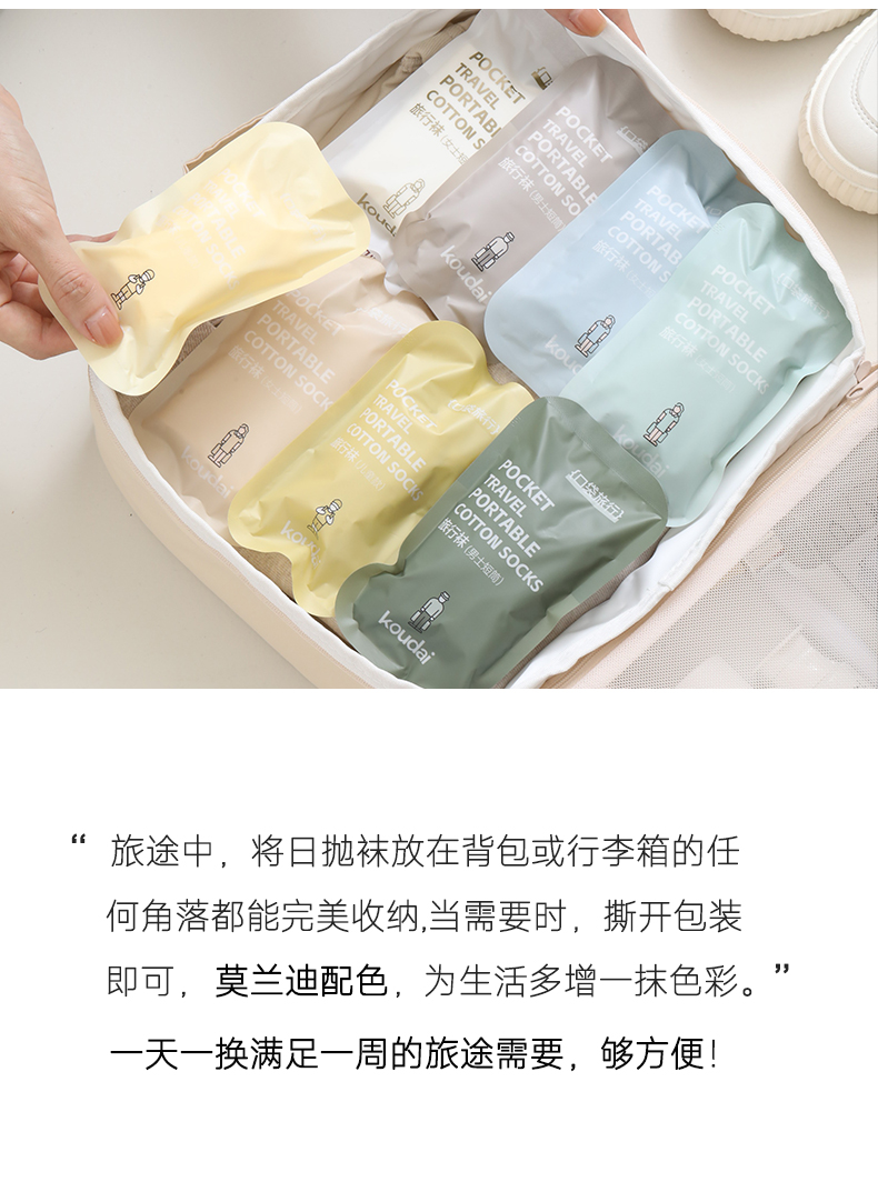 旅游出行必备 【口袋旅行 一次性袜子】莫兰迪配色 旅行便携袜 7A级抗菌 立体的脚跟不易下滑【口袋旅行 一次性产品套装】