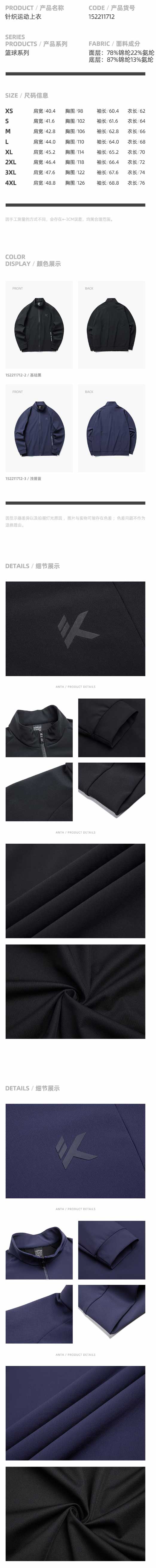 安踏运动外套男士2022春季新款KT运动篮球防风立领上衣152211712-3