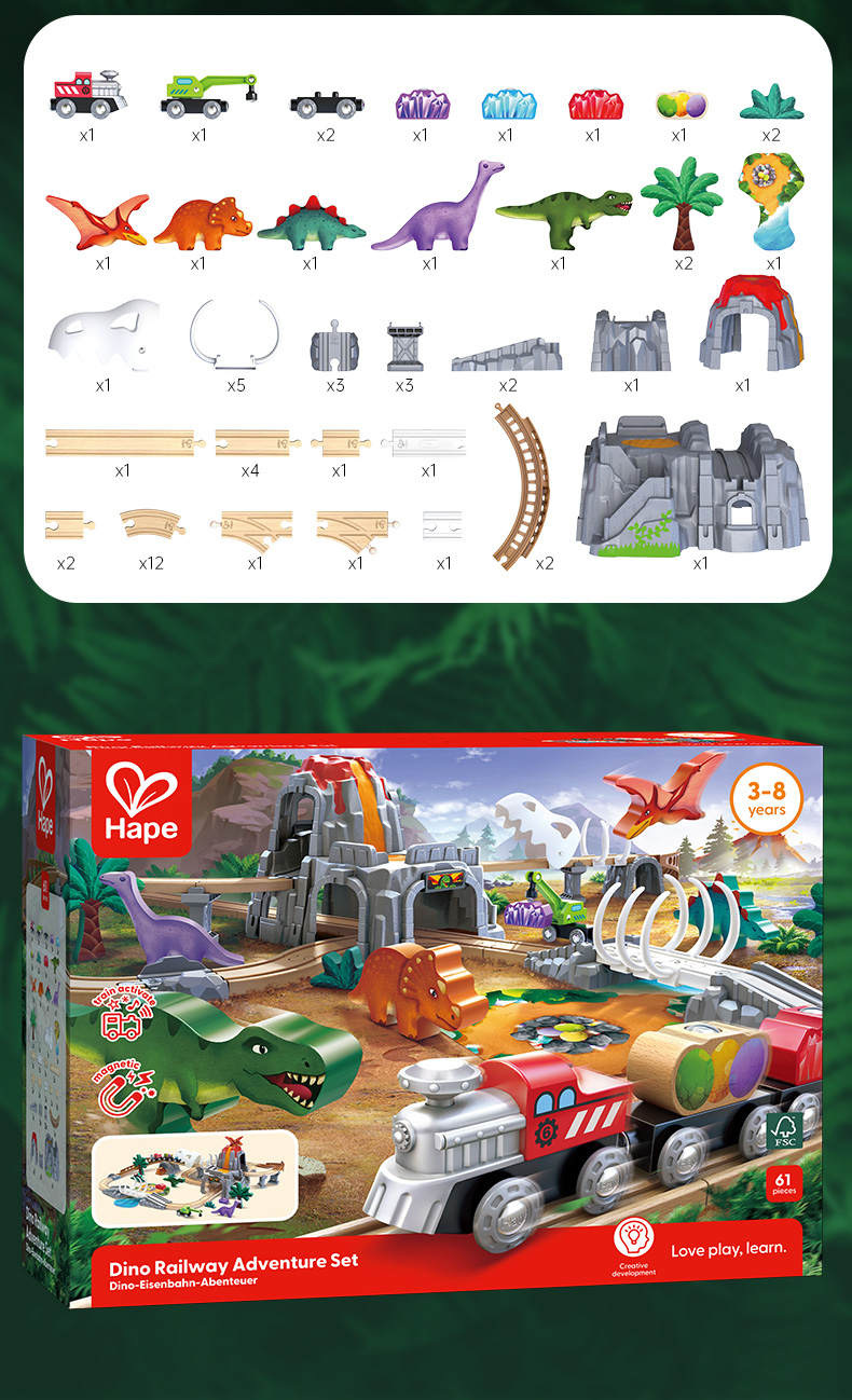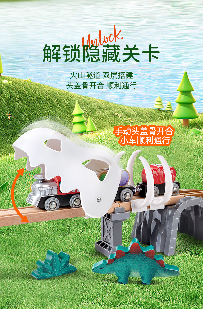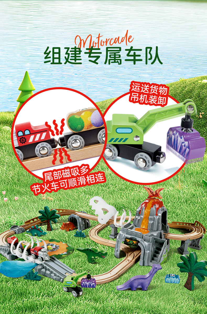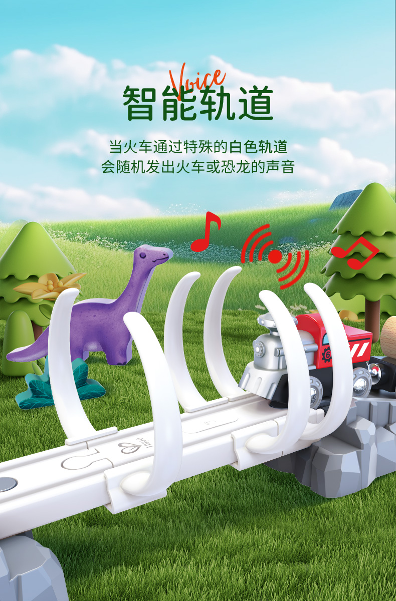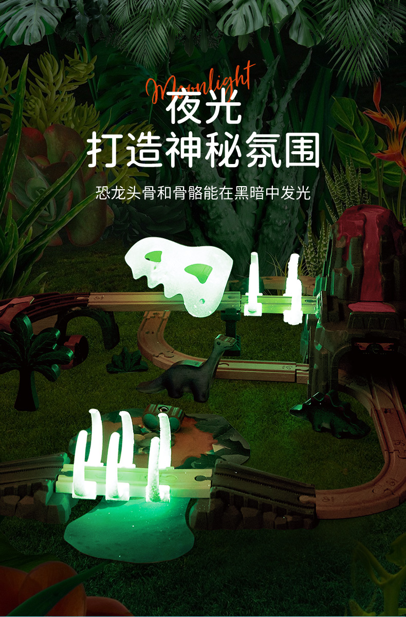 Hape夜光恐龙主题火车轨道木制滑行儿童过山车玩具男孩女孩宝宝