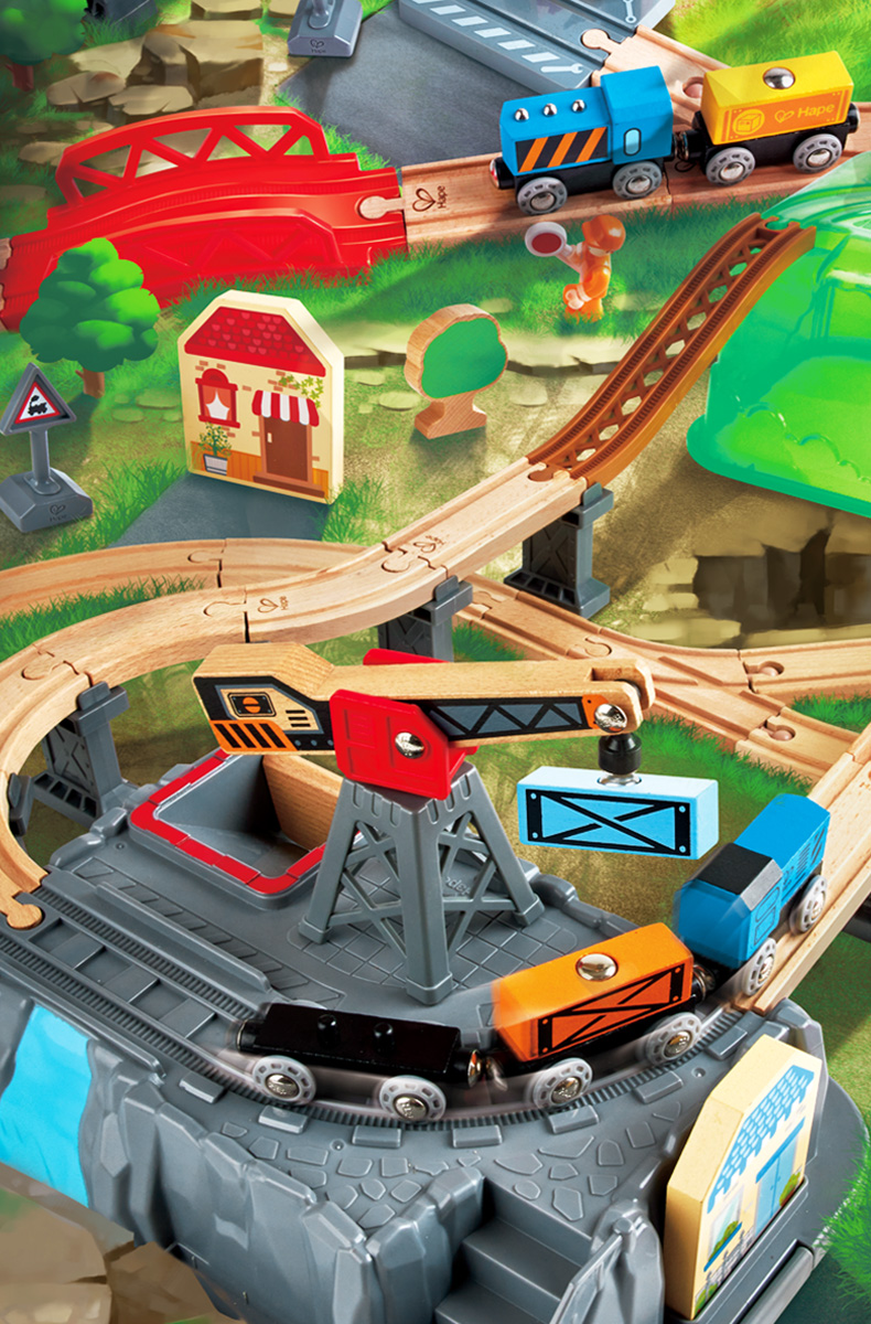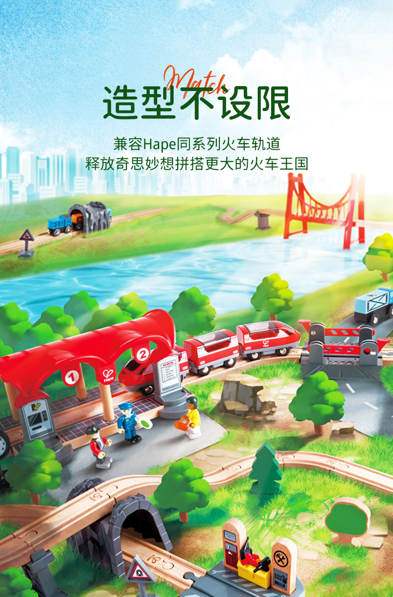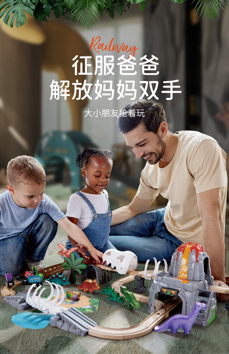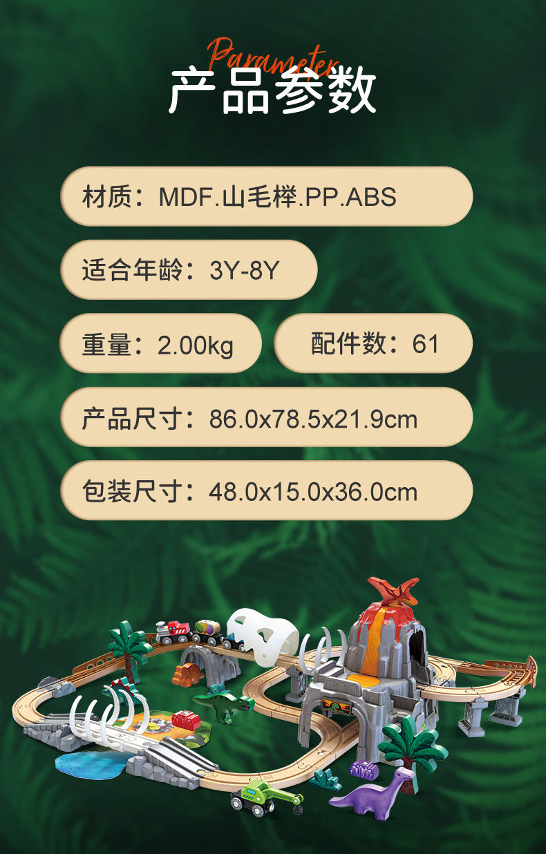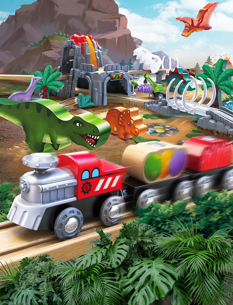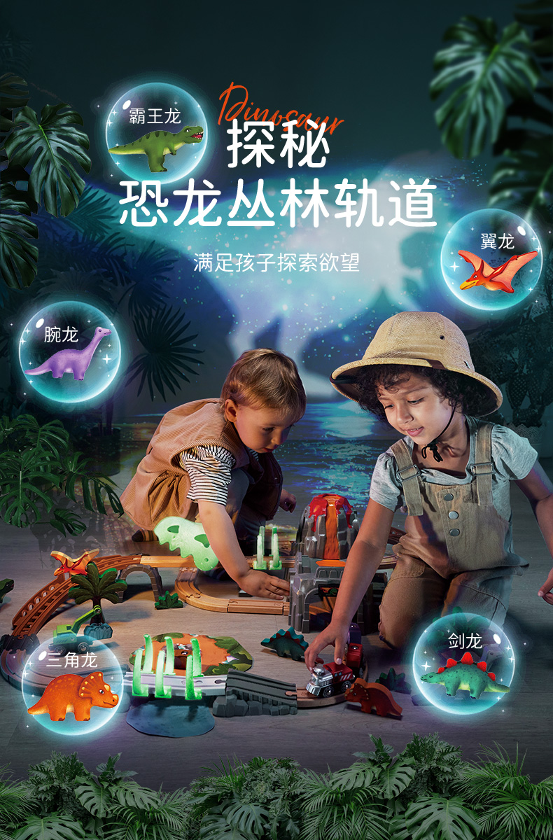 Hape夜光恐龙主题火车轨道木制滑行儿童过山车玩具男孩女孩宝宝