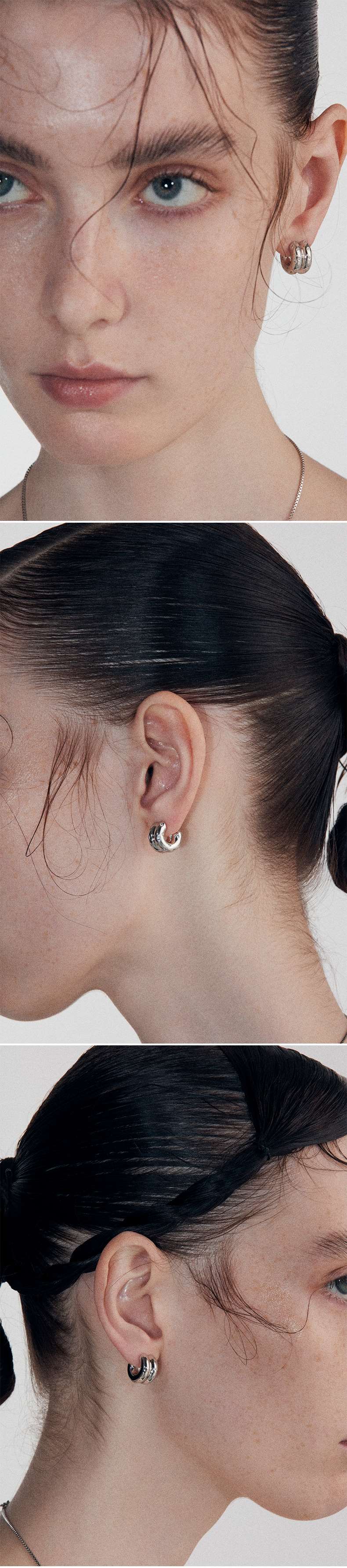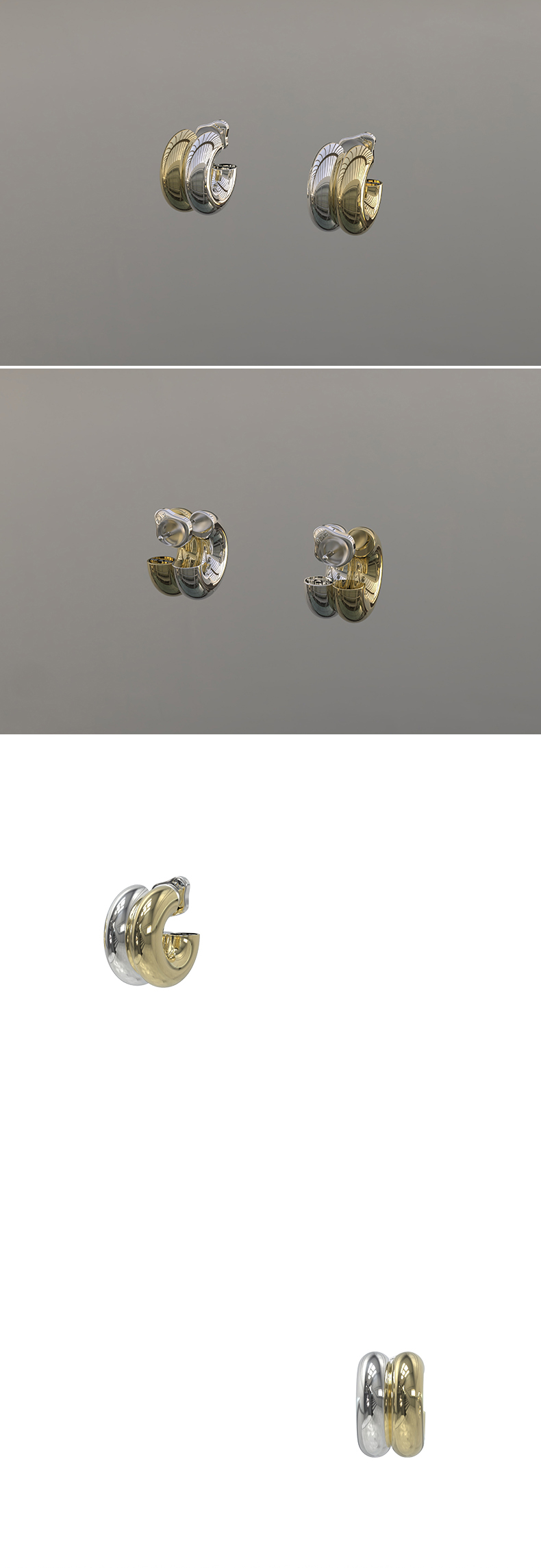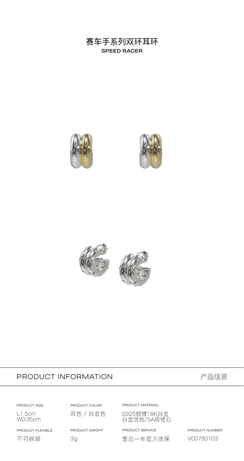 KVK双环双色925银耳环高级感原创小众设计简约个性耳钉女耳饰轻奢