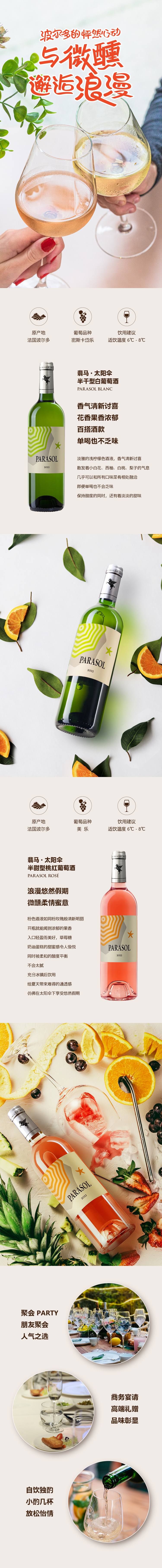 翡马(BORDEAUXVINEAM)法国进口太阳伞系列酒庄酒宴请夏季限定桃红半干白葡萄酒 750ml 太阳伞半干白+桃红两支装