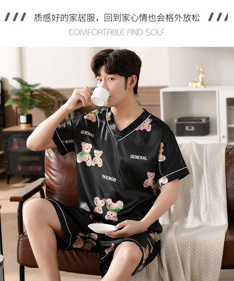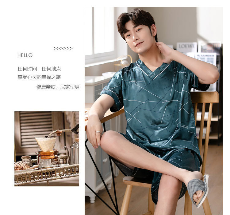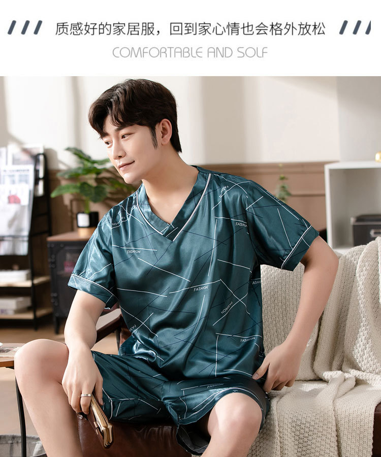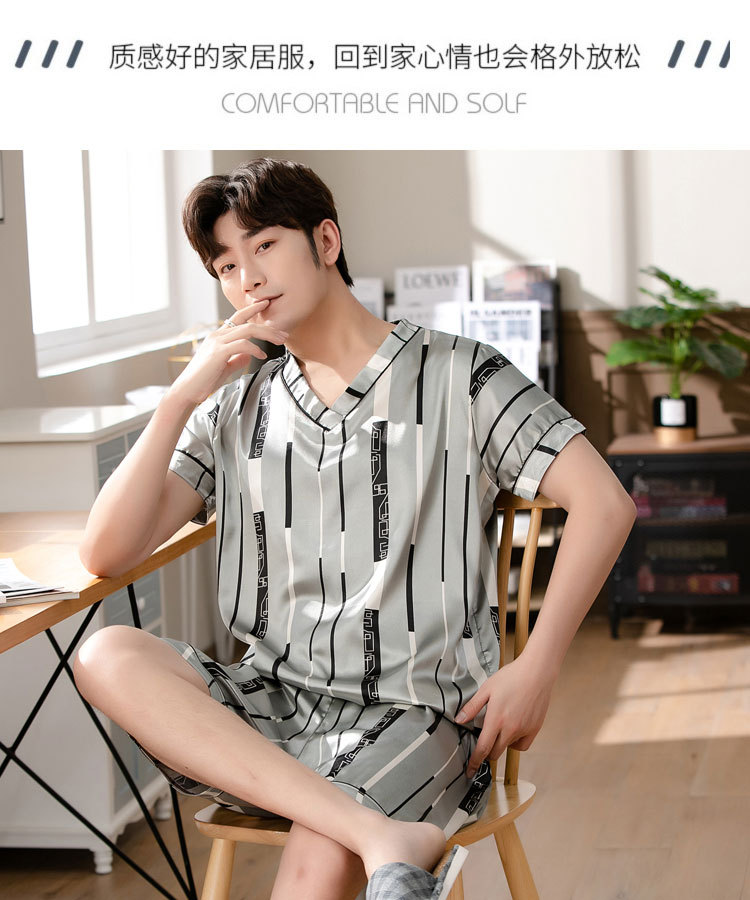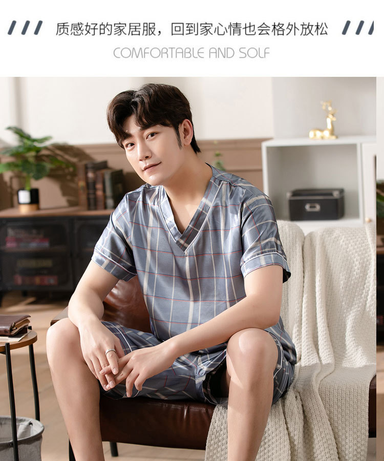 「十款可选!质感看得见」睡衣男夏季短袖短裤v领套头休闲简约男士上衣下装家居服