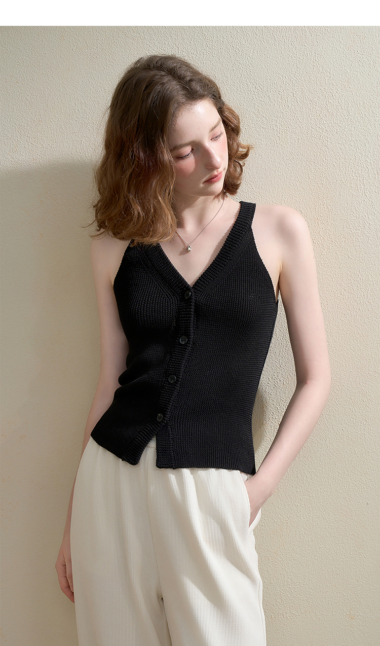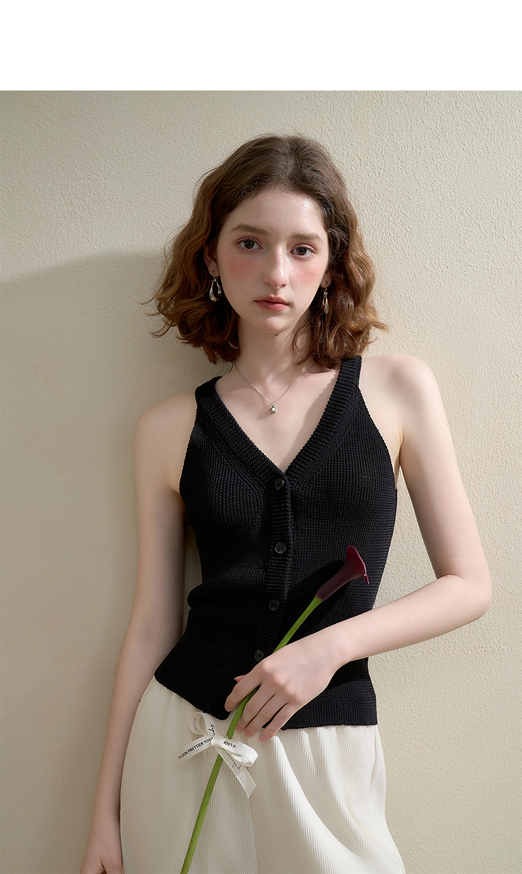 西遇气质通勤休闲套装女秋季单排扣V领背心搭针织开衫外套V2851186/V2855142