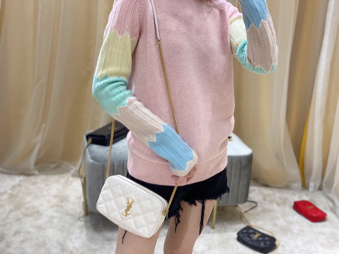 BECKY 菱形绗缝双拉链手拿链条包-白色