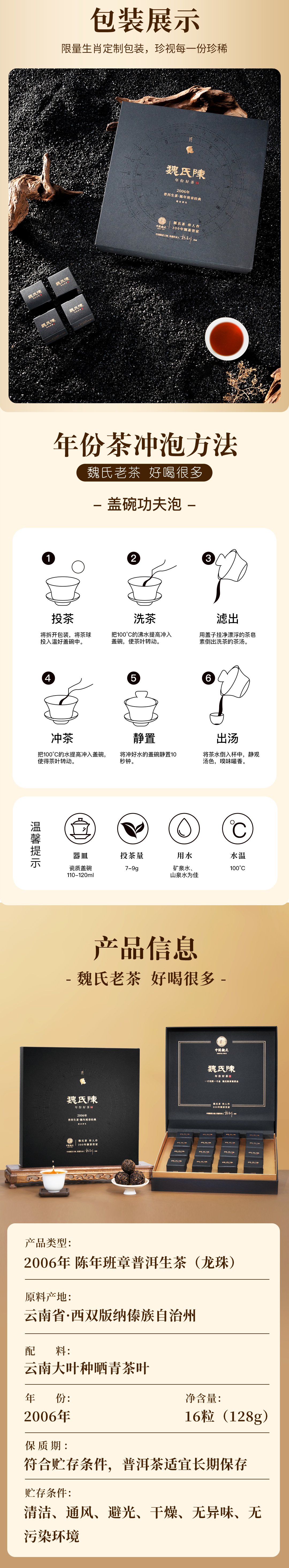 中闽魏氏 2006年陈年班章经典普洱茶(生茶)龙珠 128克 (16粒*8克)