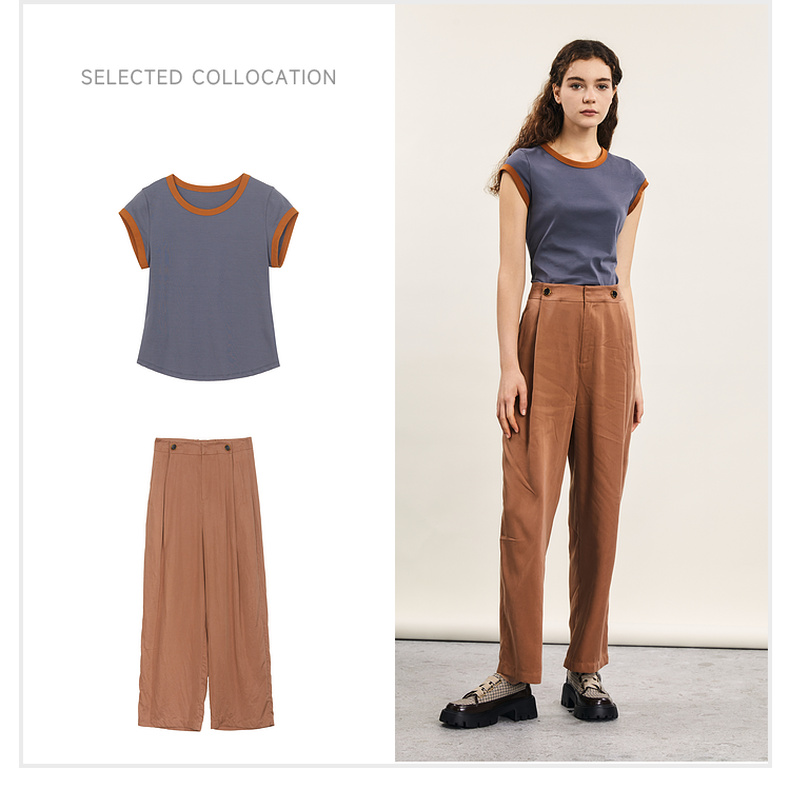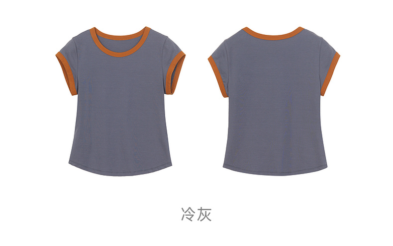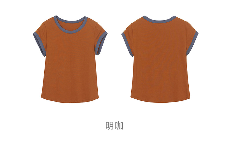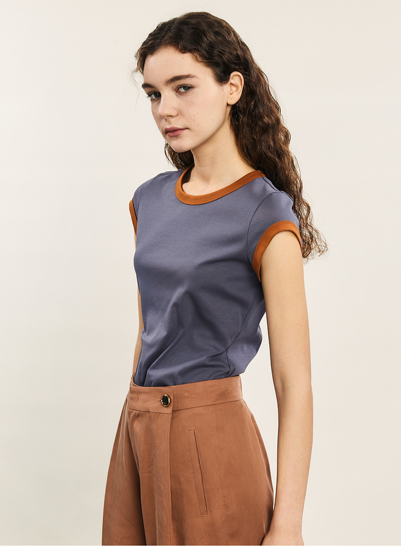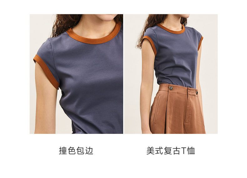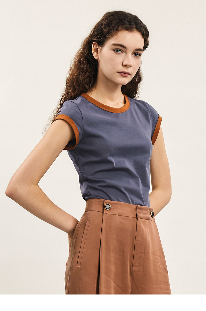 谜底修身T恤短袖女2024年夏季新品简约时尚撞色棉弹上衣242MT0580