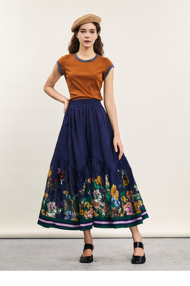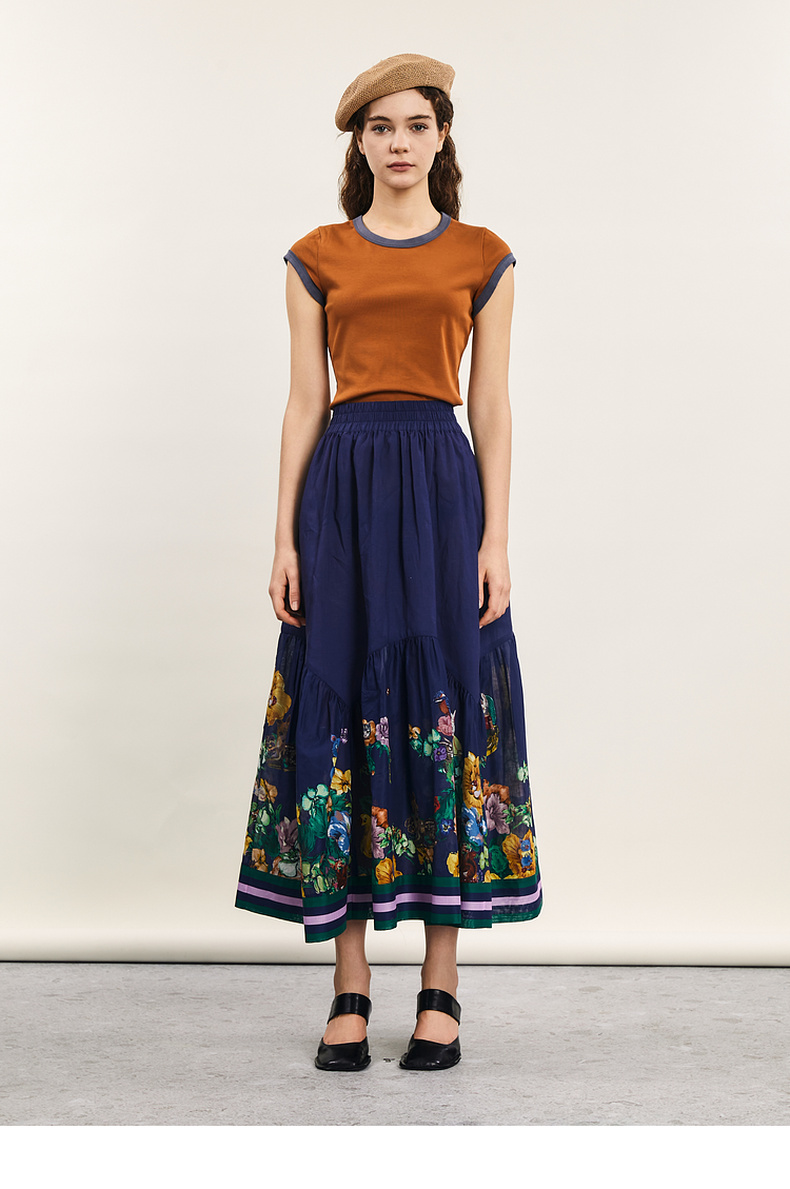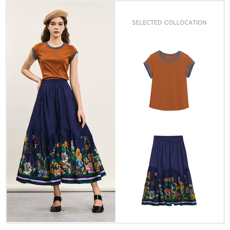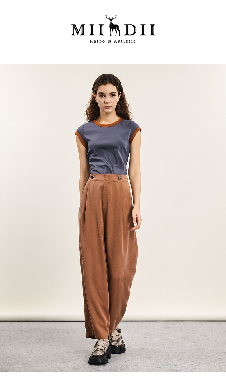 谜底修身T恤短袖女2024年夏季新品简约时尚撞色棉弹上衣242MT0580