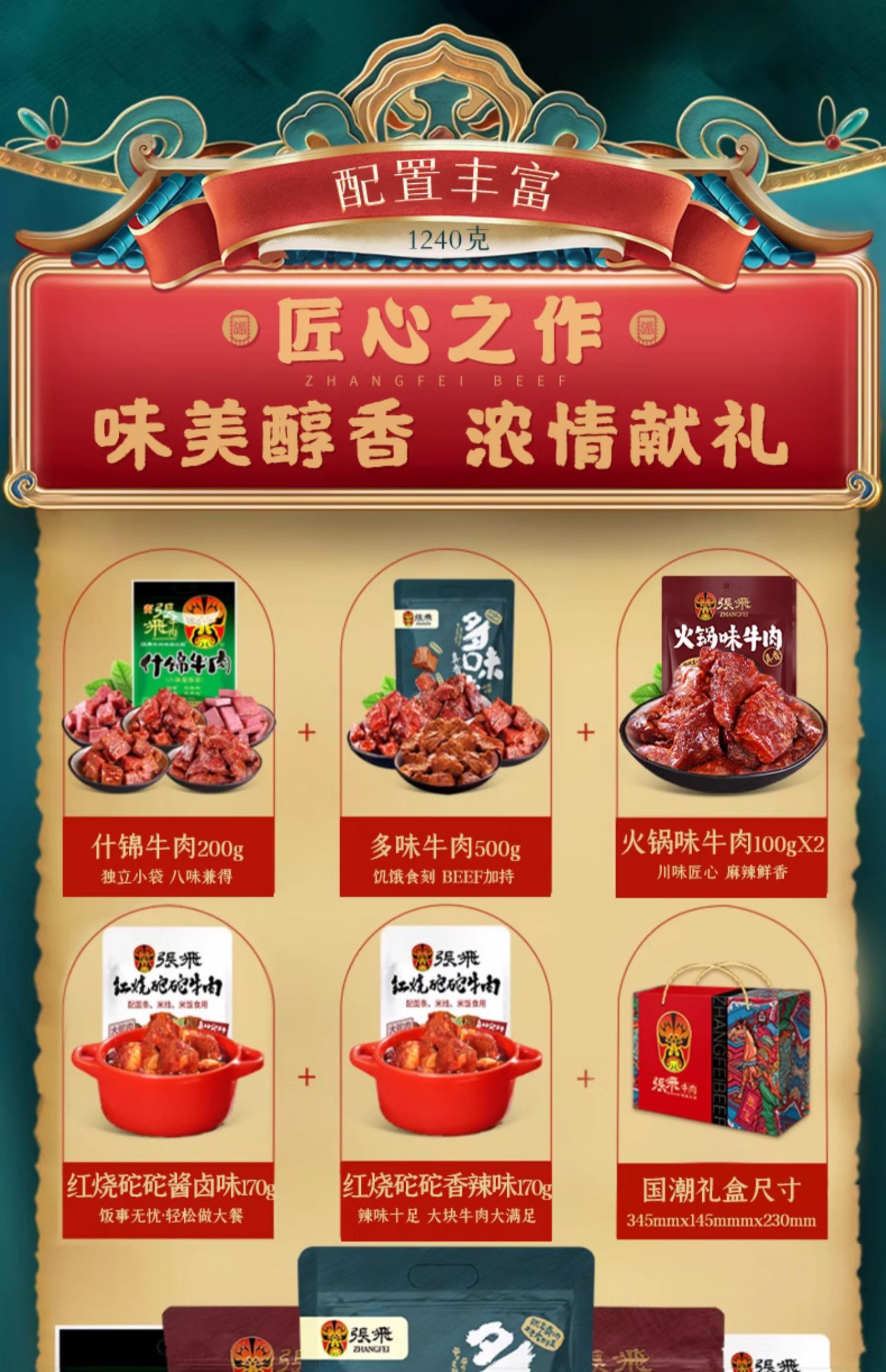 张飞国潮 牛肉零食礼盒-1240g【年货】JCT