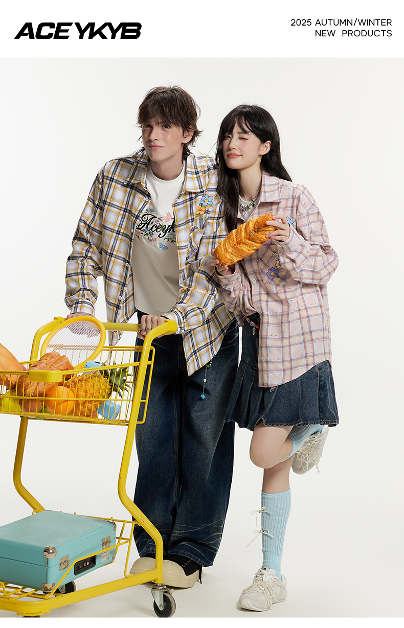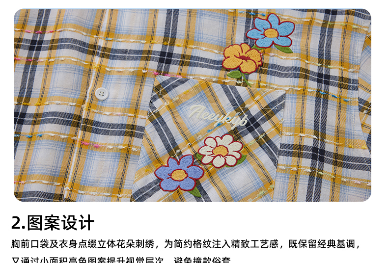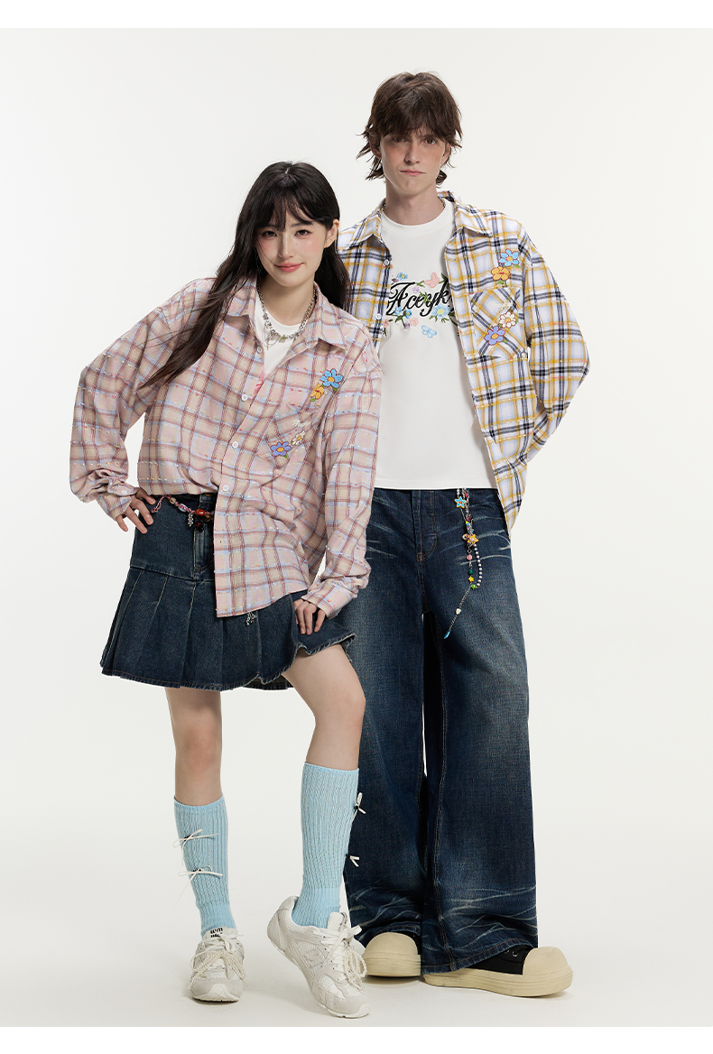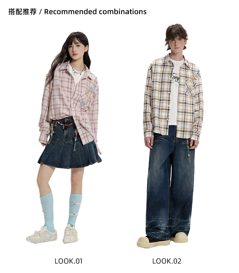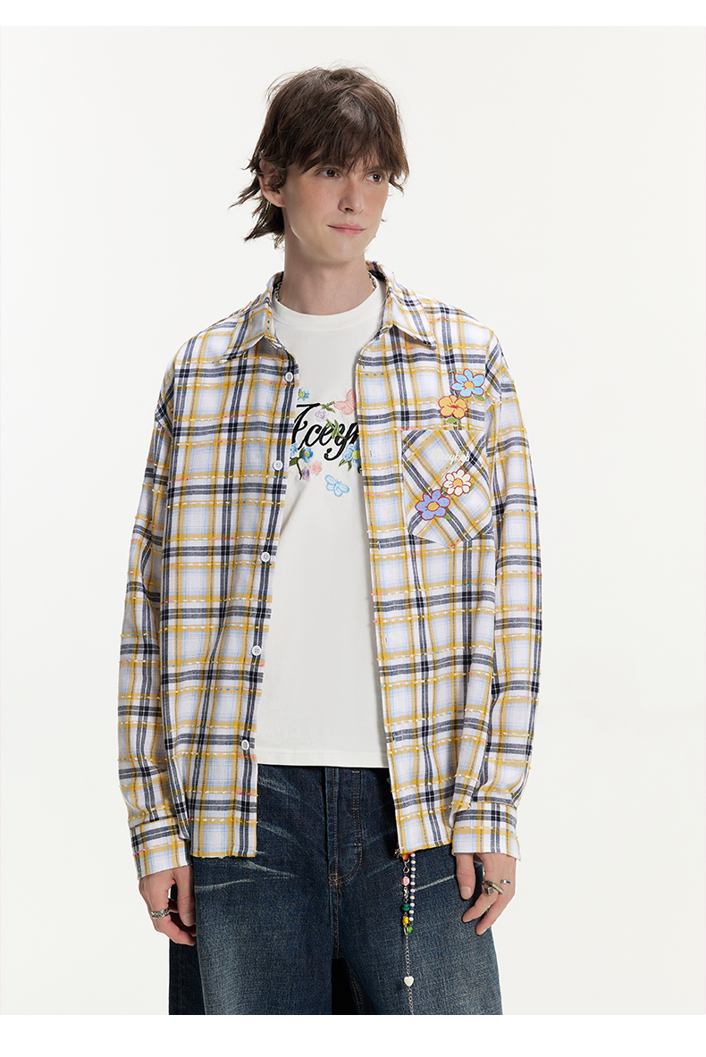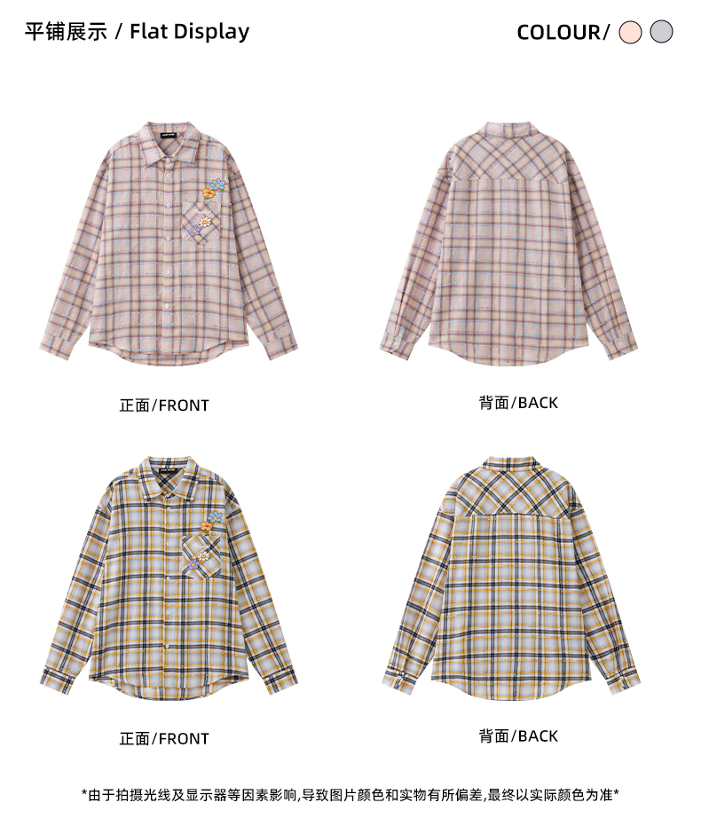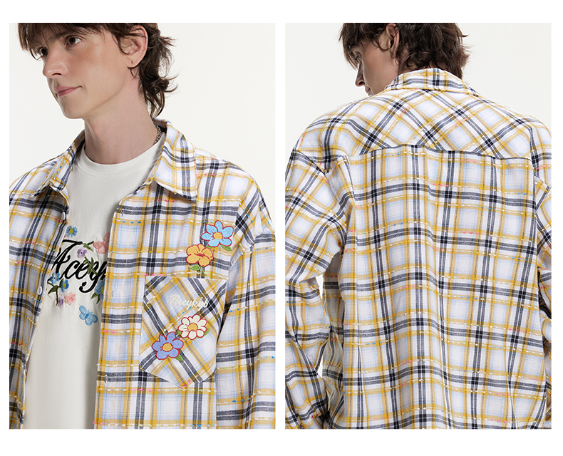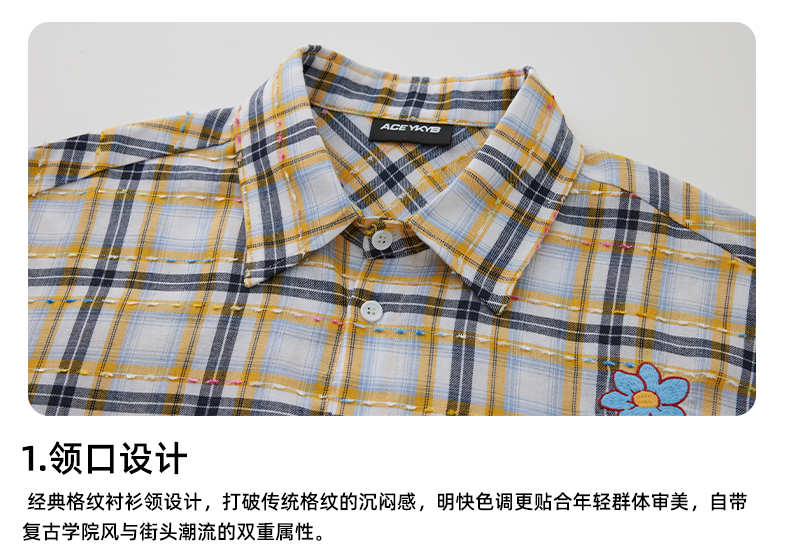 YKYB黄子韬 潮流格纹设计感衬衫刺绣小花百搭格子长袖衬衣外套秋Y53NCS055
