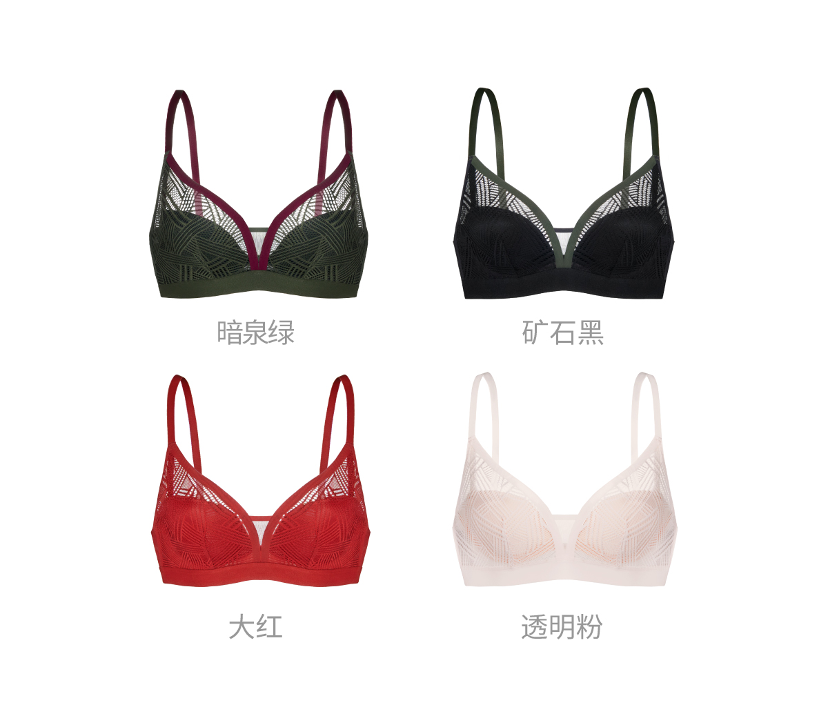 (蔓延)莫妮MONI女士内衣人瘦胸大无痕无钢圈舒适透气蕾丝薄款文胸