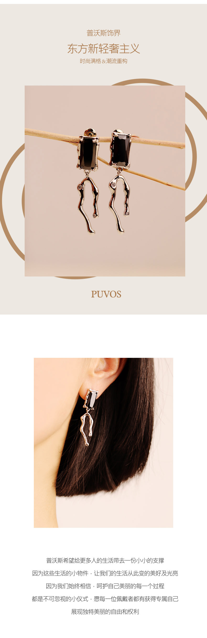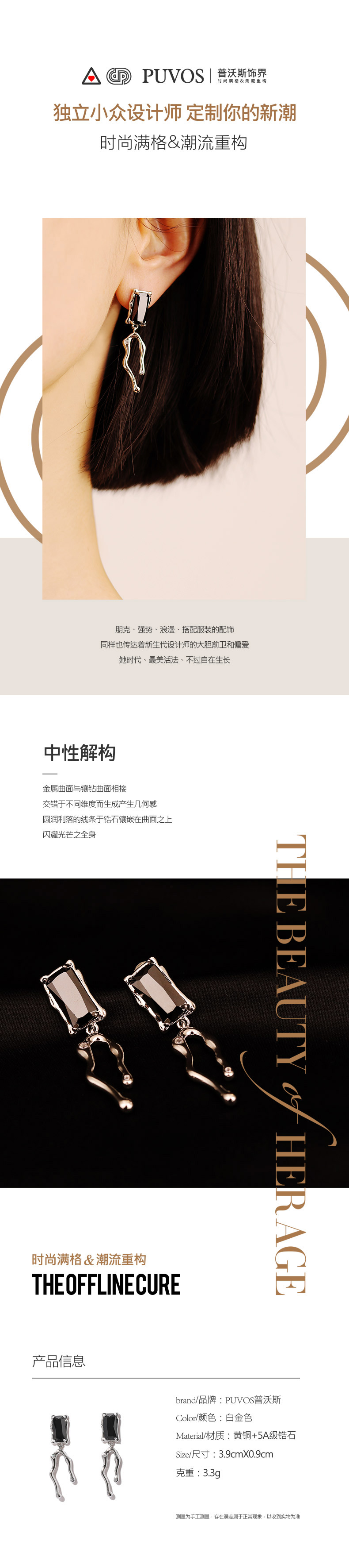 预售|PUWOS普沃斯 时尚优雅气质小众设计5A镶嵌不规则耳钉 .潮快闪[福利品]